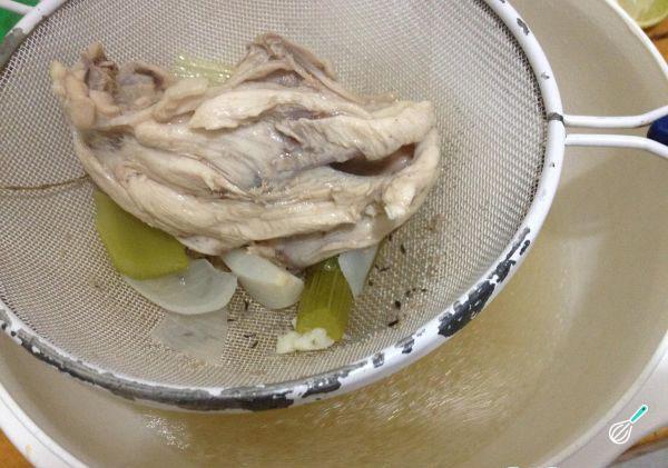 Depois desse tempo, coe o caldo com um passador. Se necessário passe o caldo várias vezes.