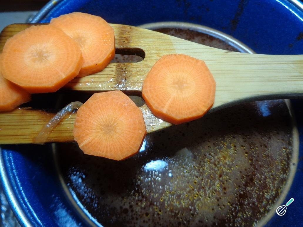 Ferva esse caldo base para continuar preparando o caldo de peixe com camarão. Adicione as cenouras e deixe cozinhar por 5 minutos.