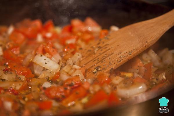 Adicione o molho de tomate, os tomates picados, o caldo de peixe, tampe a panela e deixe cozinhar por 20 minutos em fogo médio.