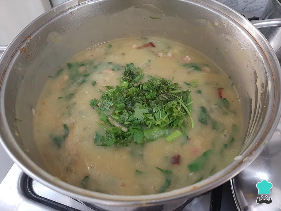 Desligue o fogo e acrescente cheiro verde a gosto e acerte o sal, se for necessário. Seu caldo verde simples com bacon já está pronto para ser saboreado! Experimente servir torradinhas com o caldo e bom apetite!