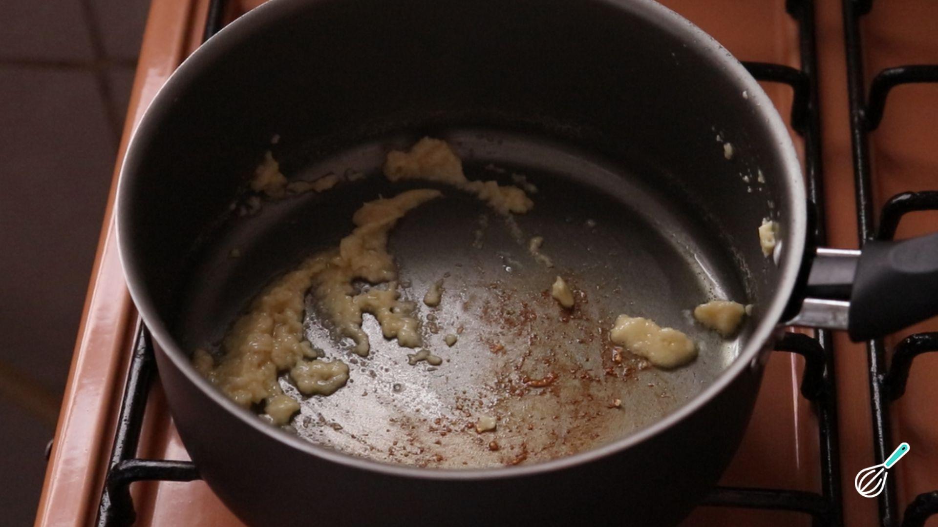 Na mesma panela coloque um fio de azeite e doure o alho e a cebola.