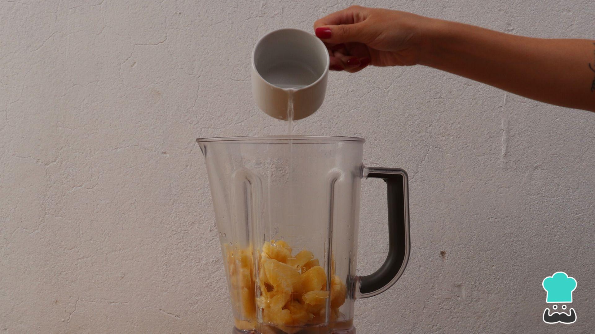 Corte a mandioca cozida em pedaços e bata no liquidificador com 2 xícaras de água.