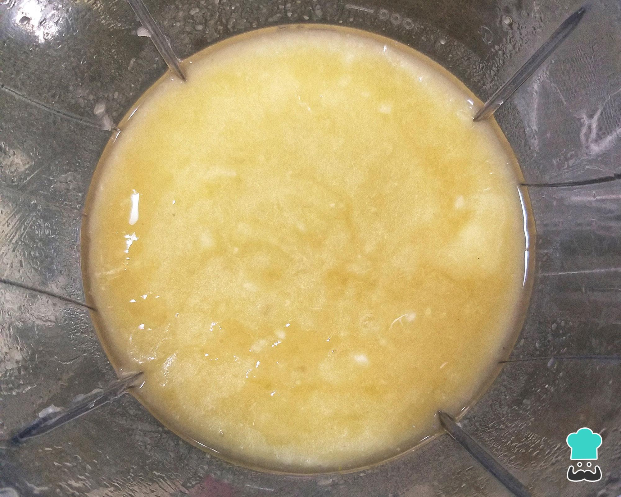 Dica: se necessário, adicione mais um pouco de água no liquidificador para obter um caldo bem lisinho e não muito espesso.