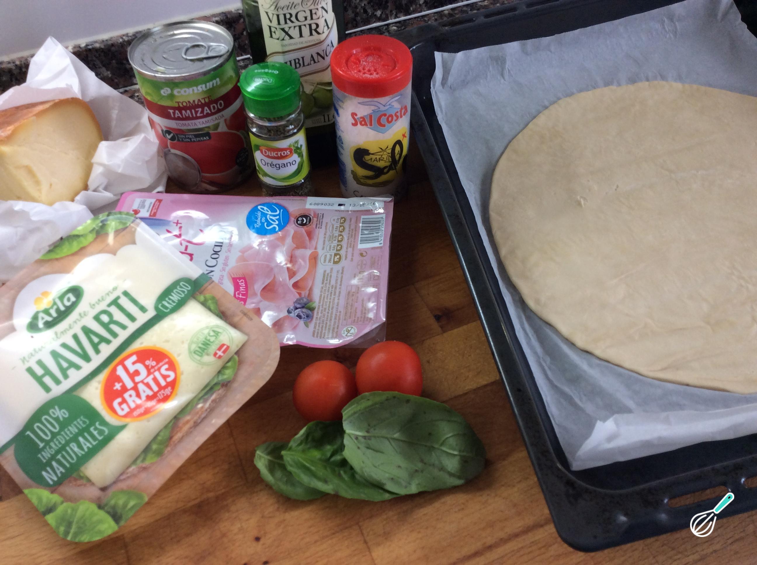 Prepare todos os ingredientes para este calzone italiano fácil. Pode fazer a massa você mesmo, ou pode optar por uma massa já feita (que tornará o preparo mais rápido). Eu gosto muito de queijo por isso optei por dois queijos de sabor forte (o Havarti e o Mahon), mas isso é completamente opcional, você pode simplesmente usar queijo mussarela.