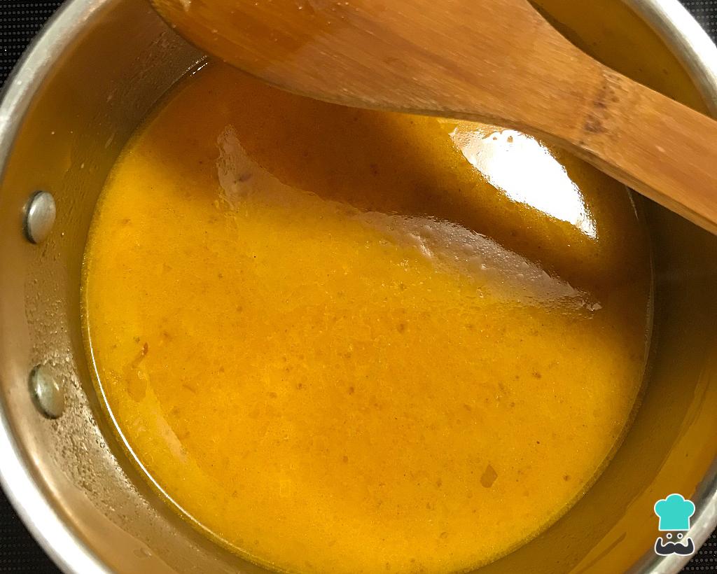 Seguidamente adicione o leite de coco e deixe em fogo médio até ferver.