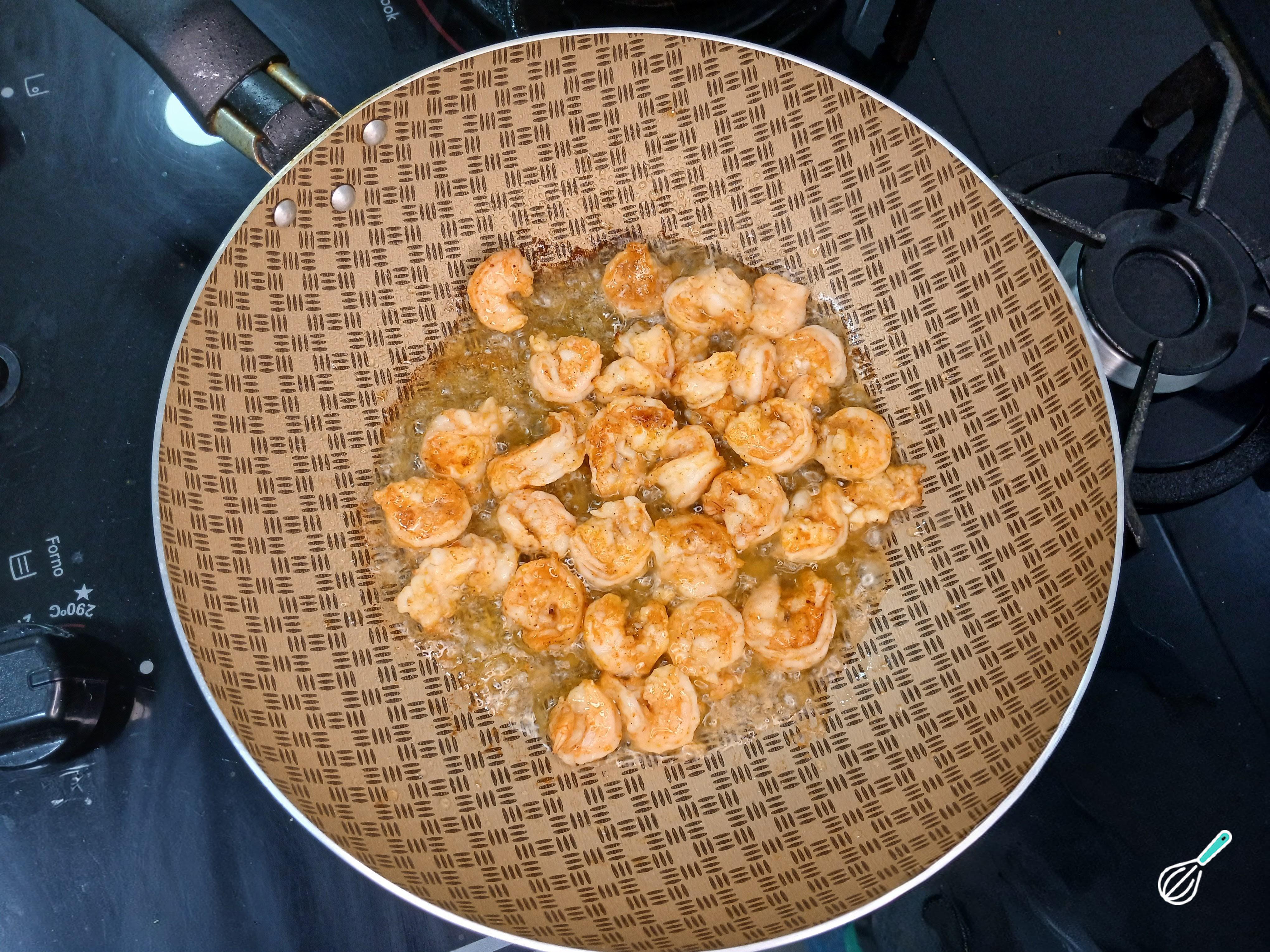 Dica: É importante que os camarões refoguem bem dos dois lados.