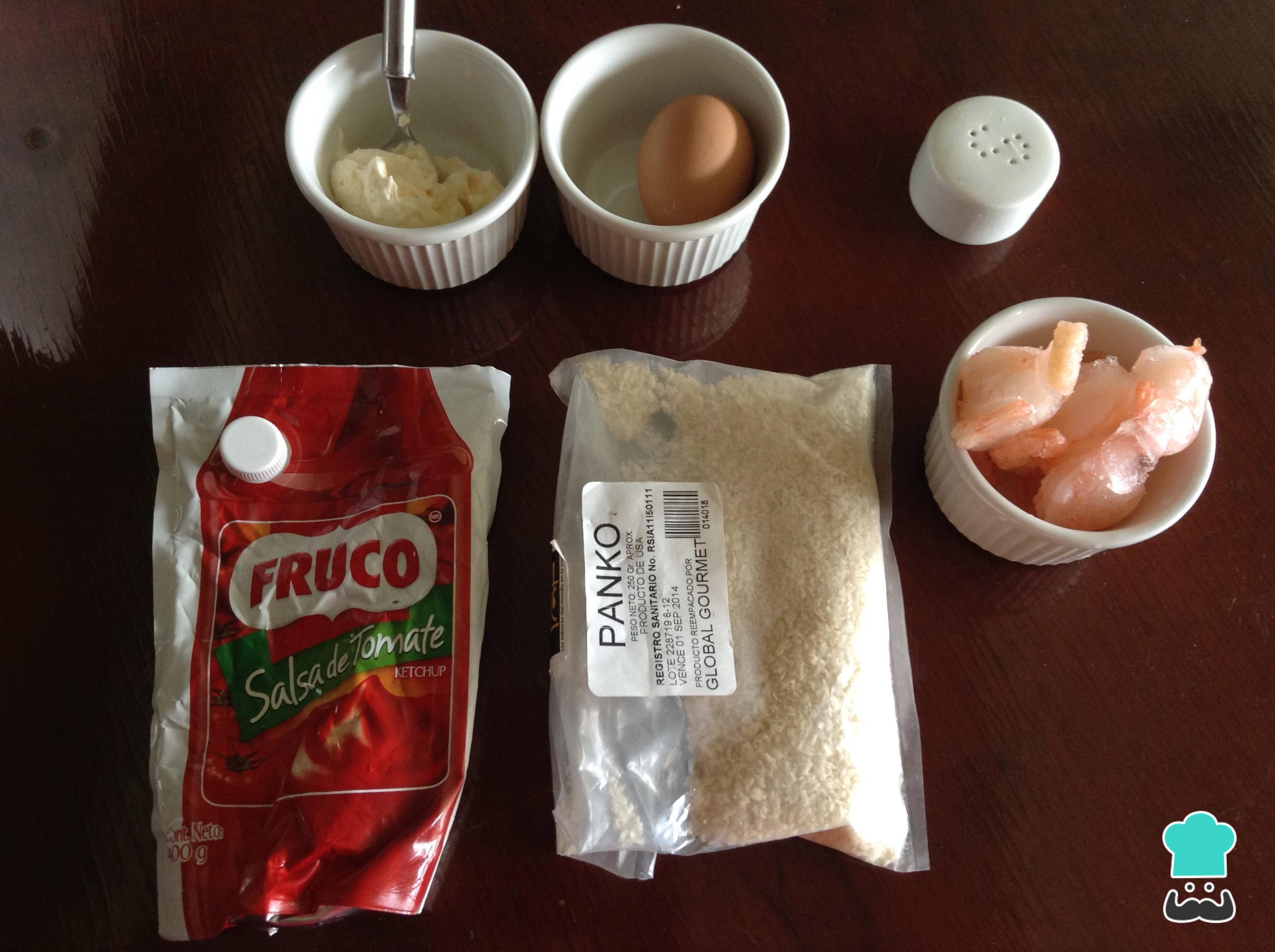 O primeiro passo para fazer esta receita de camarão empanado ao molho rosé é reunir os ingredientes.