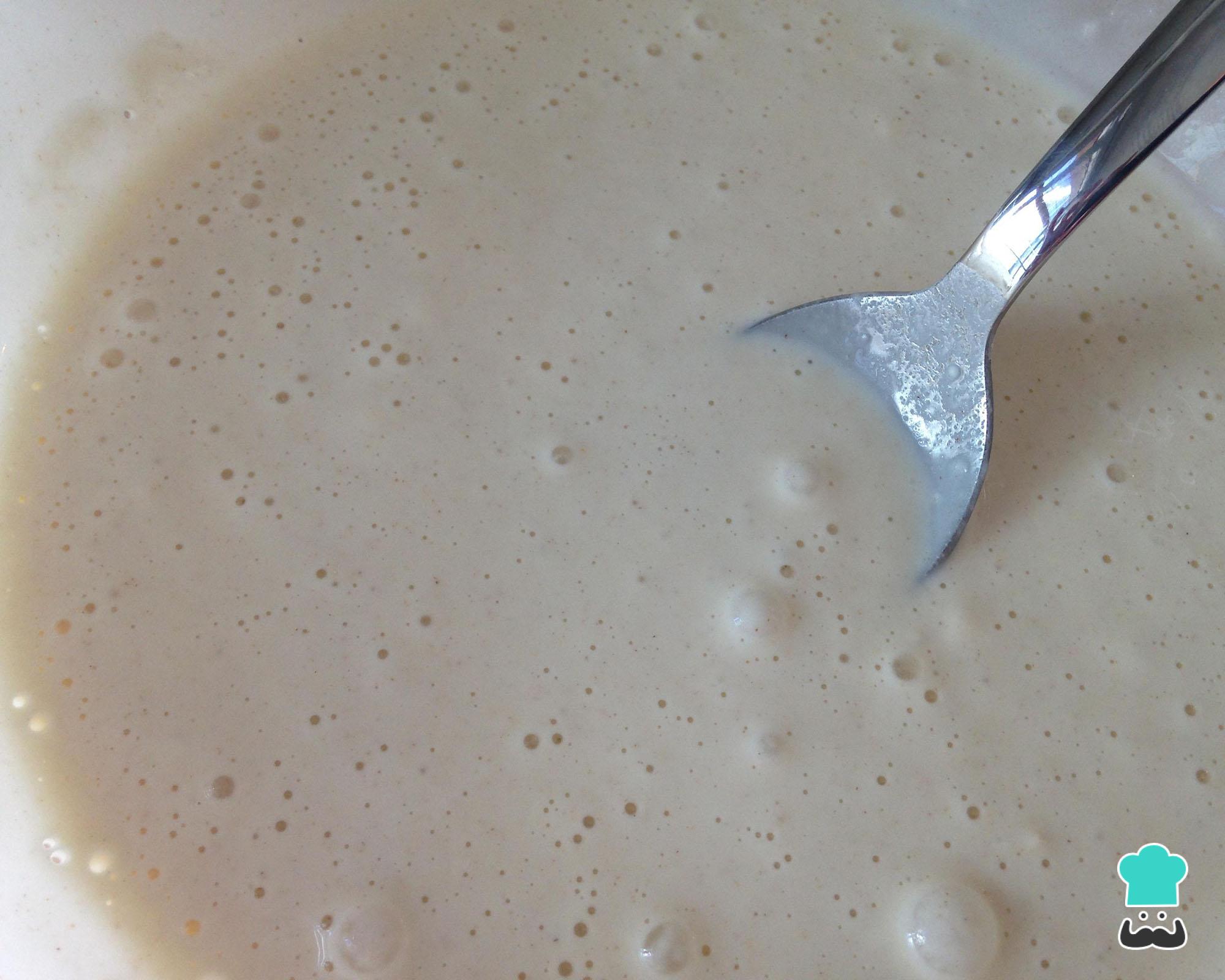 Prepare a polme para tempura batendo o ovo e misturando-o com a água filtrada ou água com gás. Adicione a farinha peneirada pouco a pouco, enquanto mistura, até obter uma massa líquida e sem grumos.