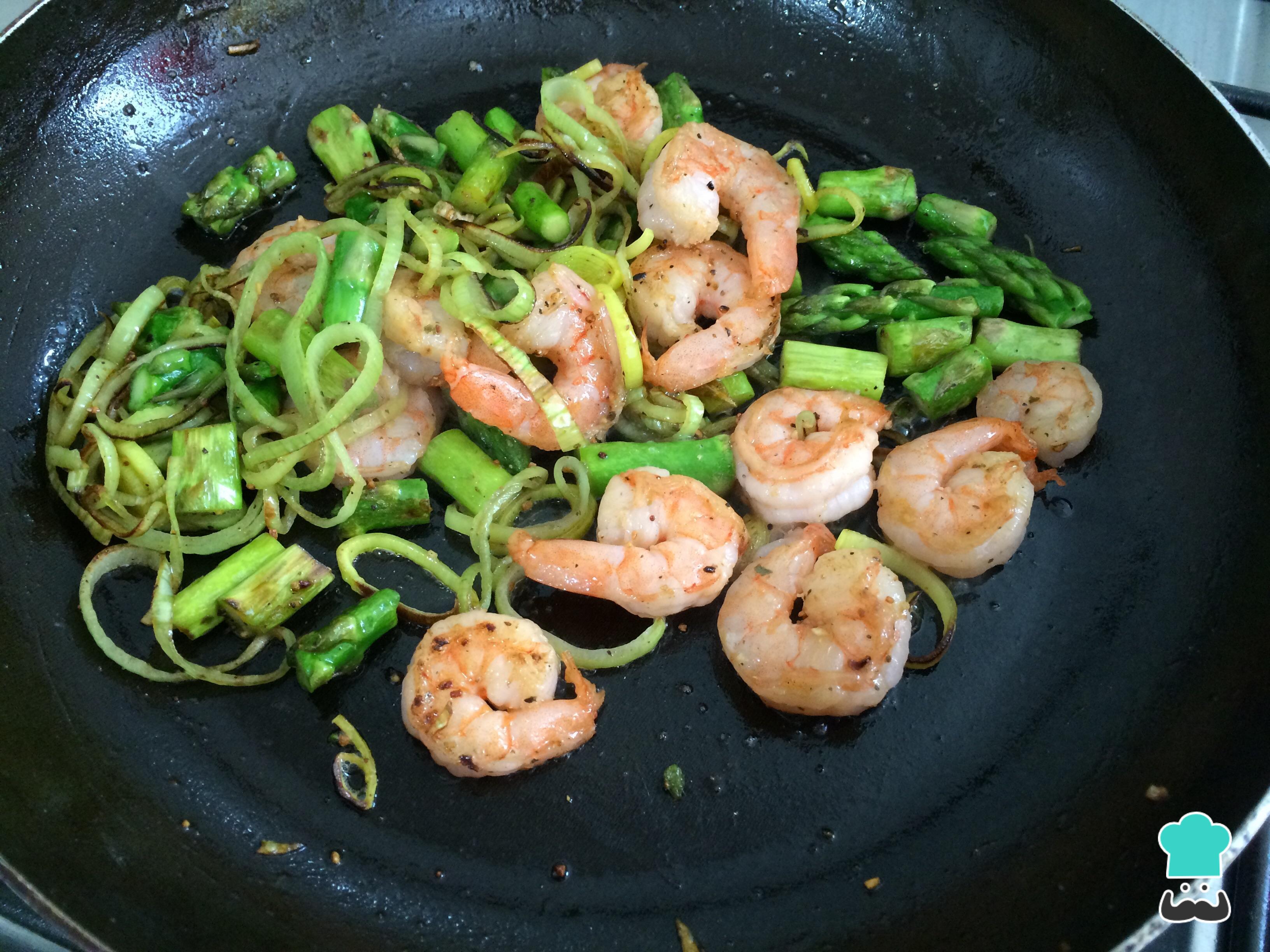 Como fazer Camarões e aspargos salteados: