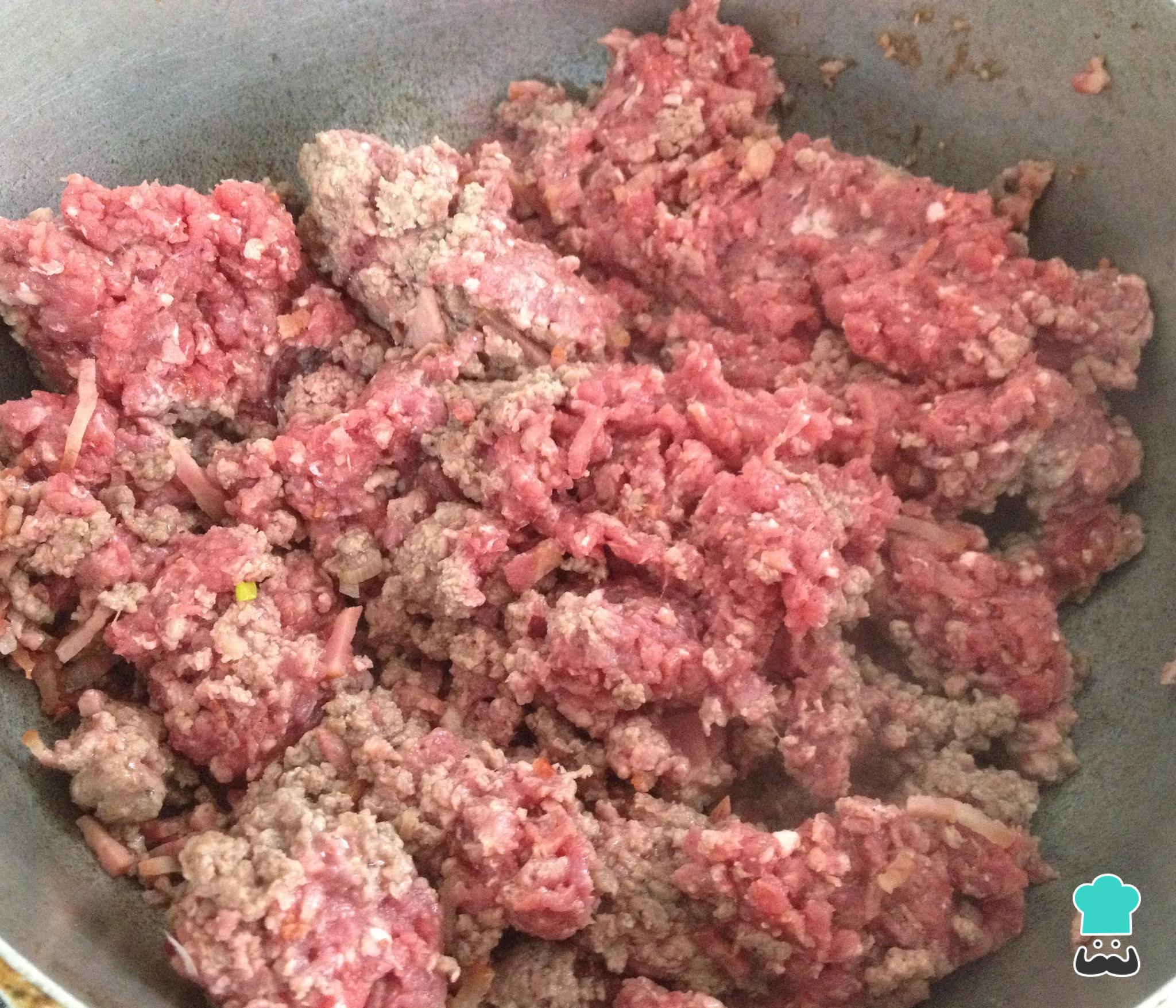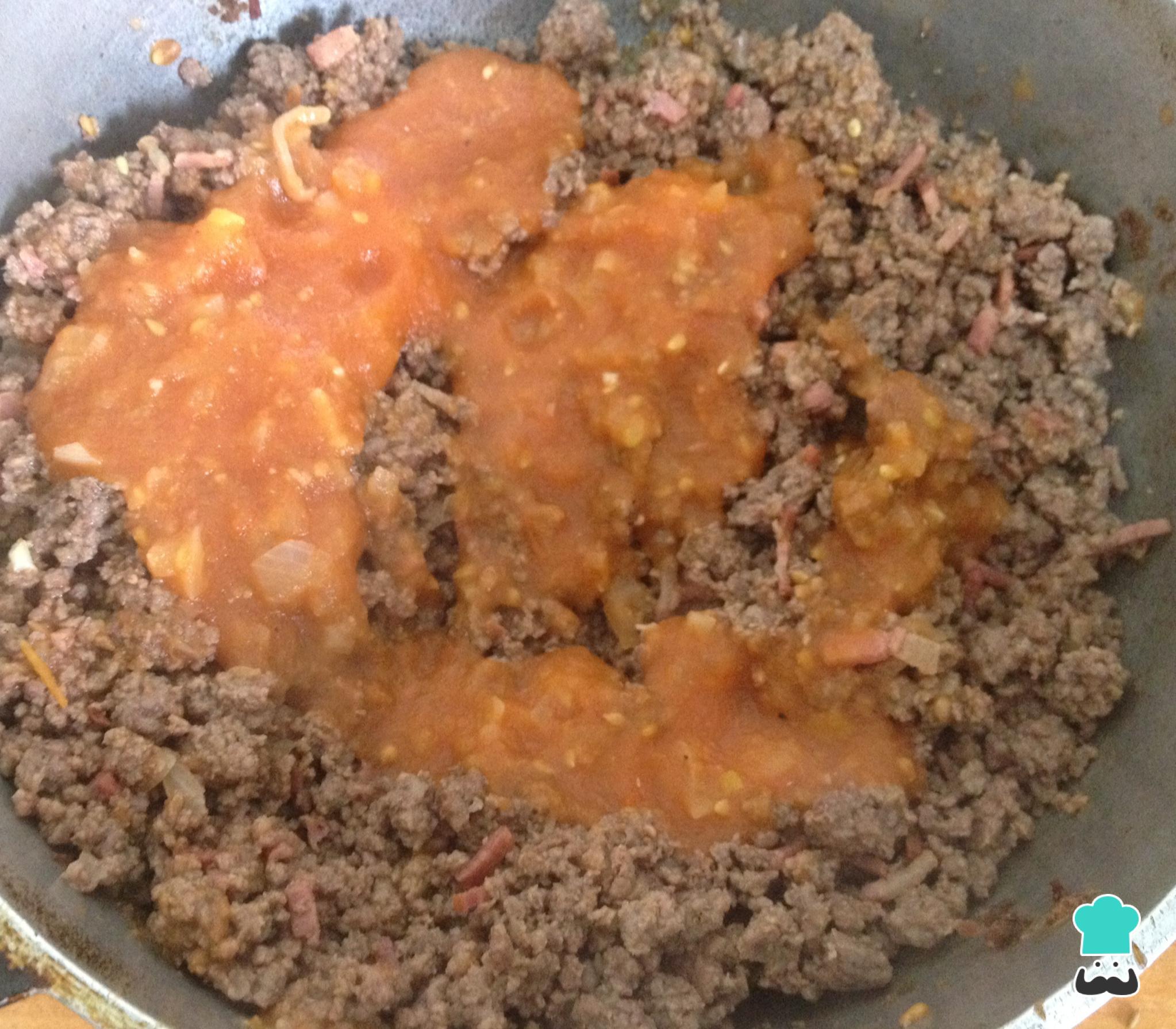 Assim que a carne estiver cozinhada, adicione metade do molho napolitano para umedecê-la um pouco.