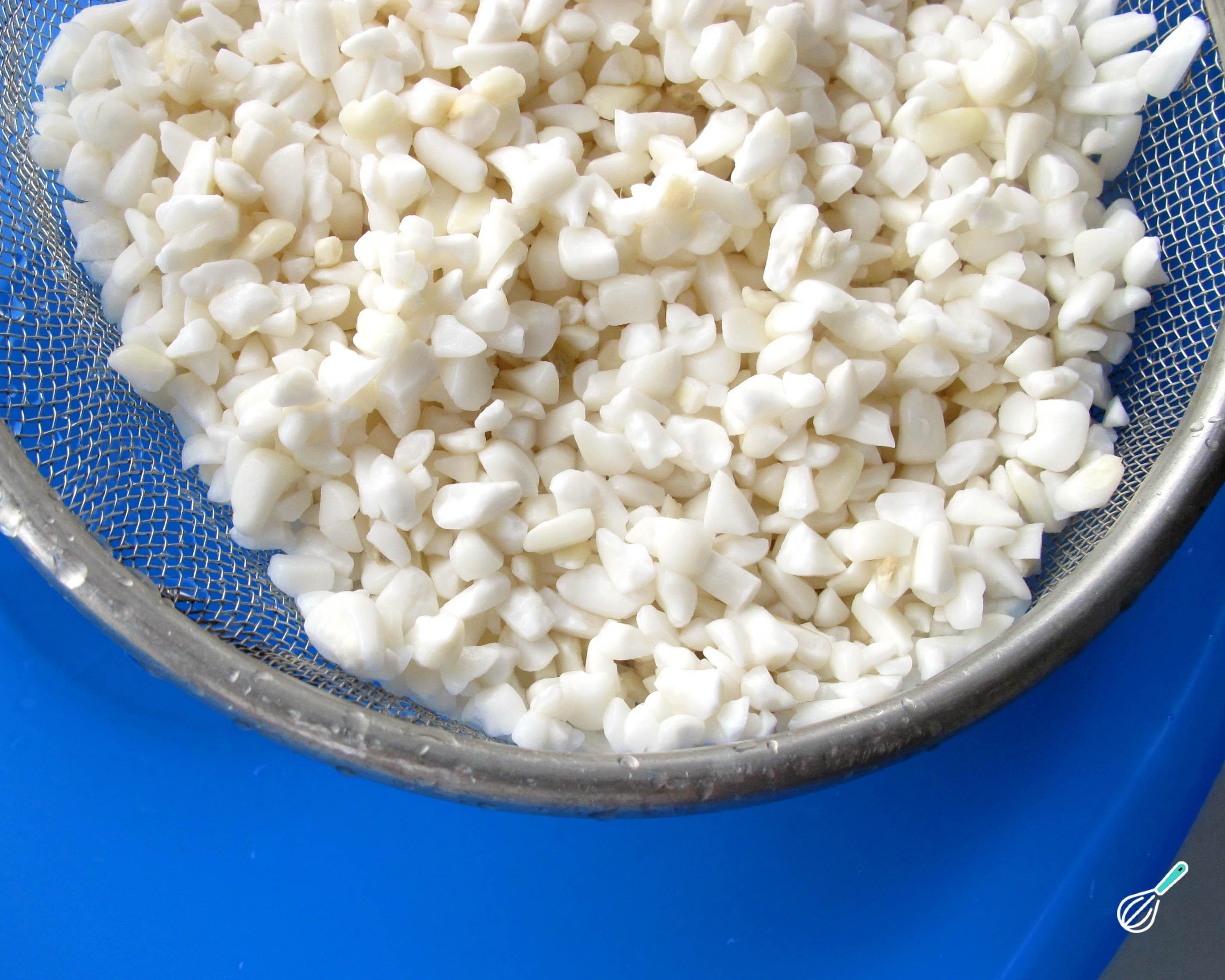 Comece por lavar bem a canjica em água corrente e colocar de molho em água com o açúcar por cerca de 4 horas. Depois cozinhe no vapor até ficar macia.