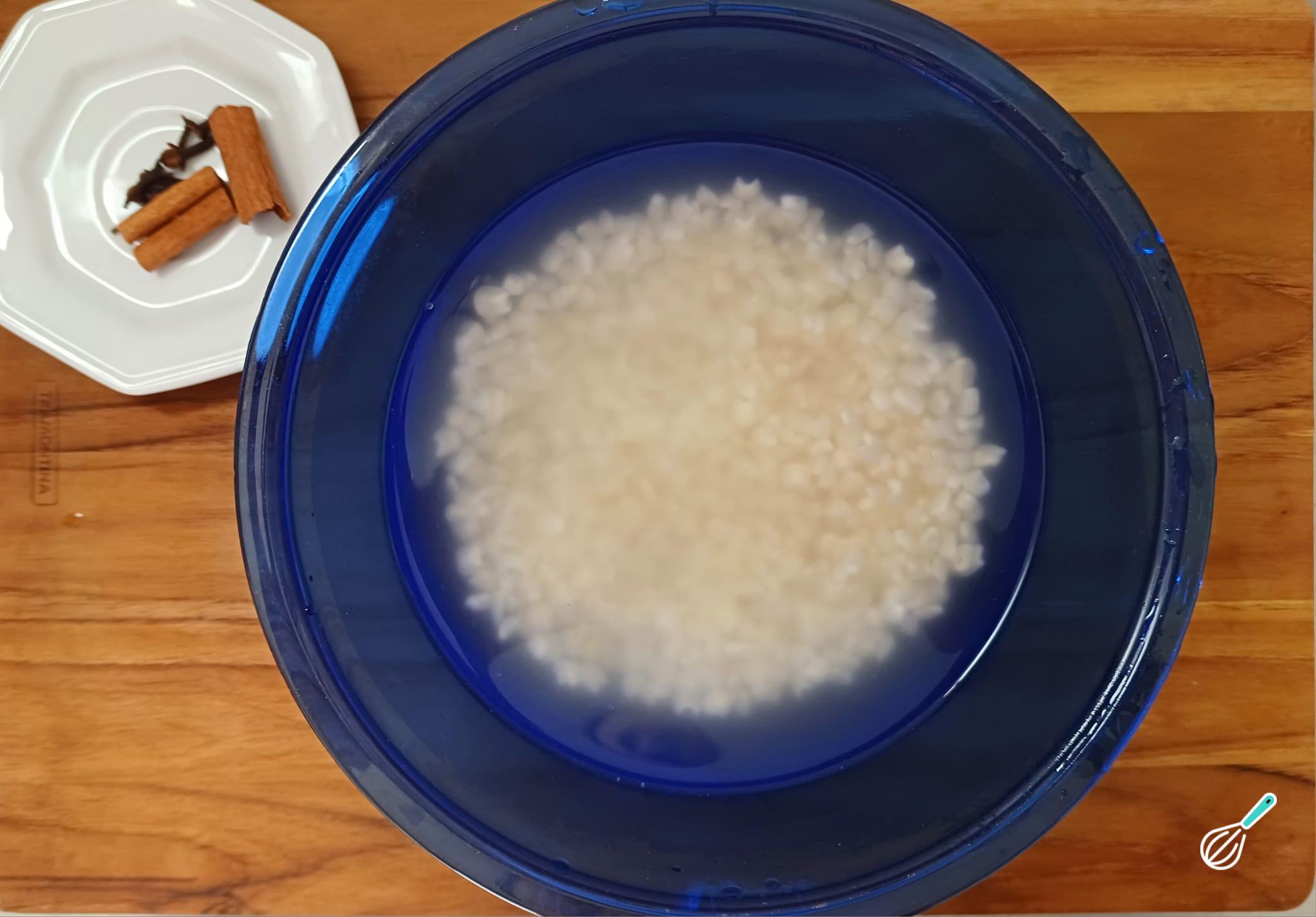 Deixe o milho branco de molho por pelo menos 2 horas.