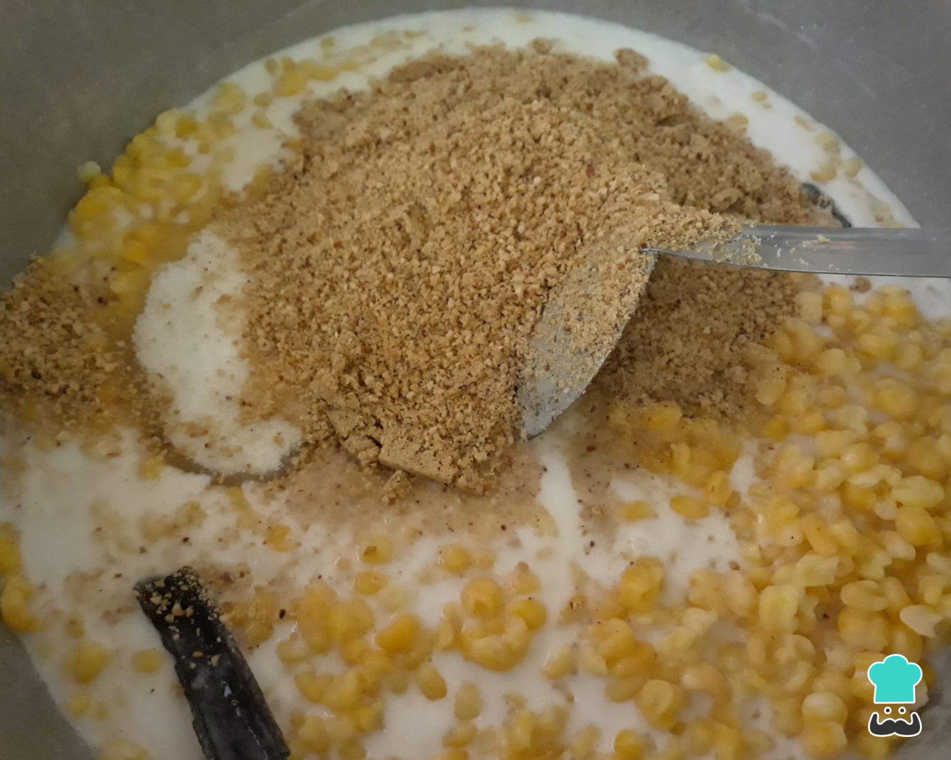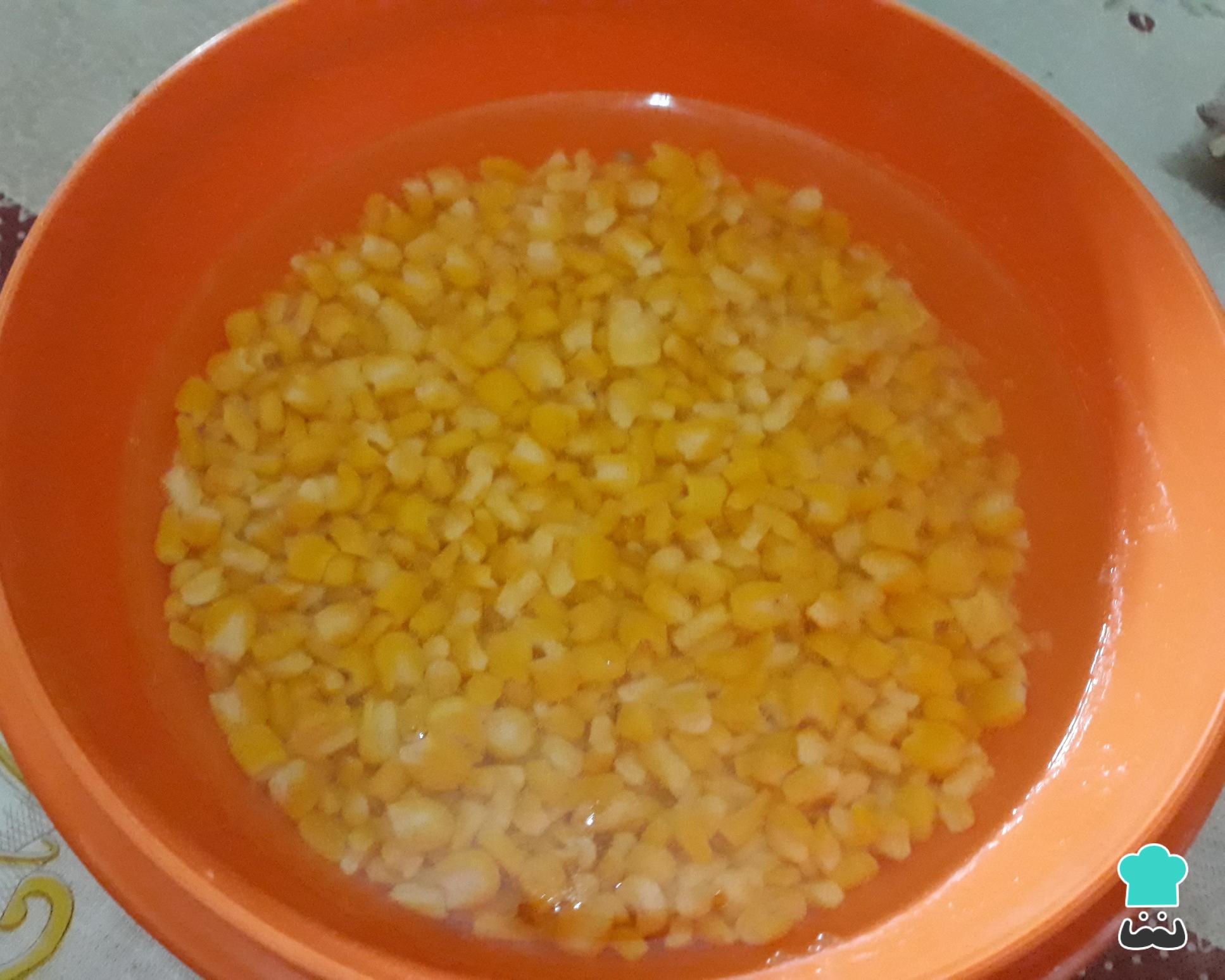 Dica: A quantidade de água deve ser suficiente para cobrir todo o milho.