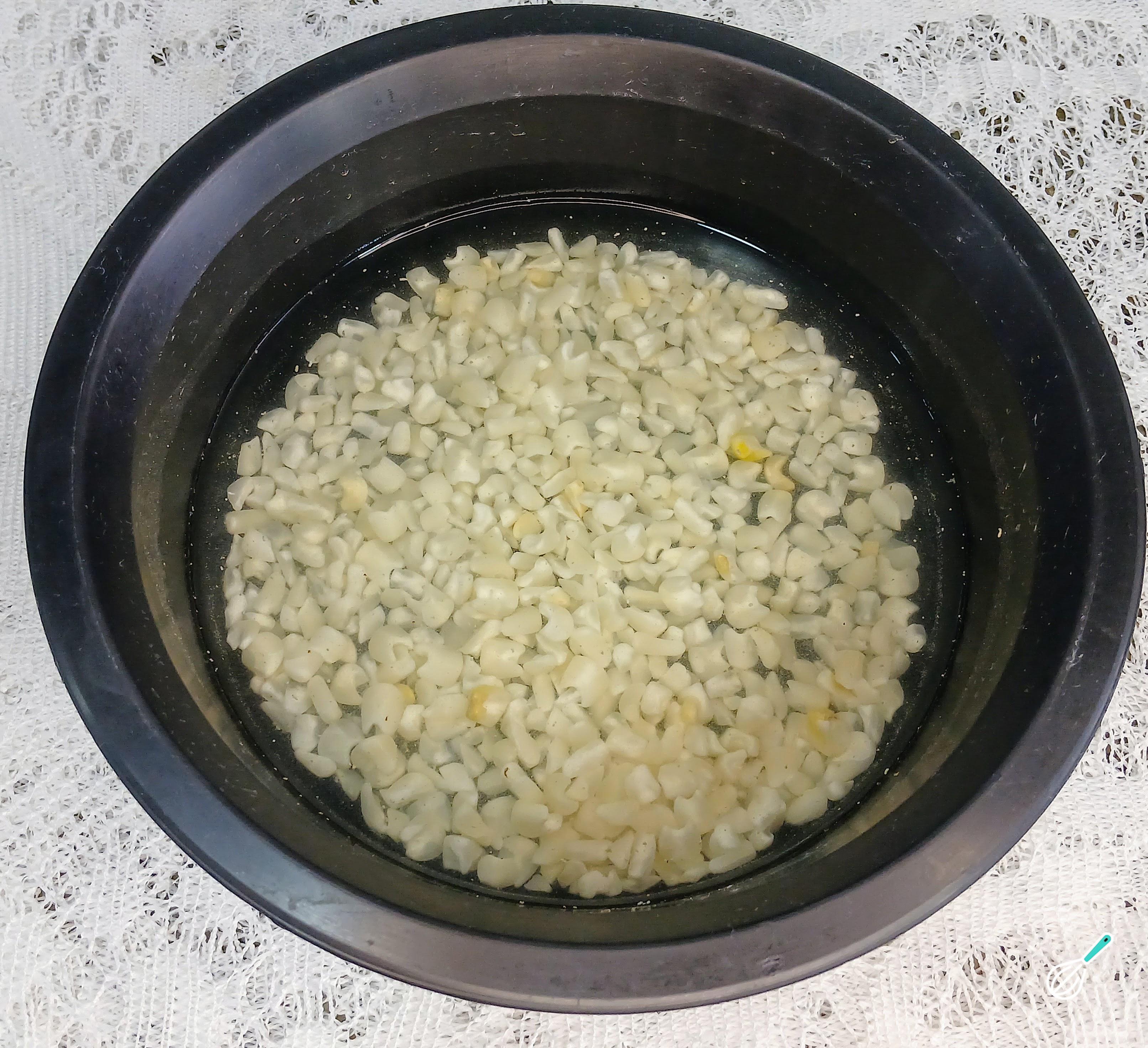 Para o preparo da canjica salgada com calabresa, deixe o milho para canjica de molho por no mínimo 6 horas. Esse processo é necessário e importante para amolecer os grãos.