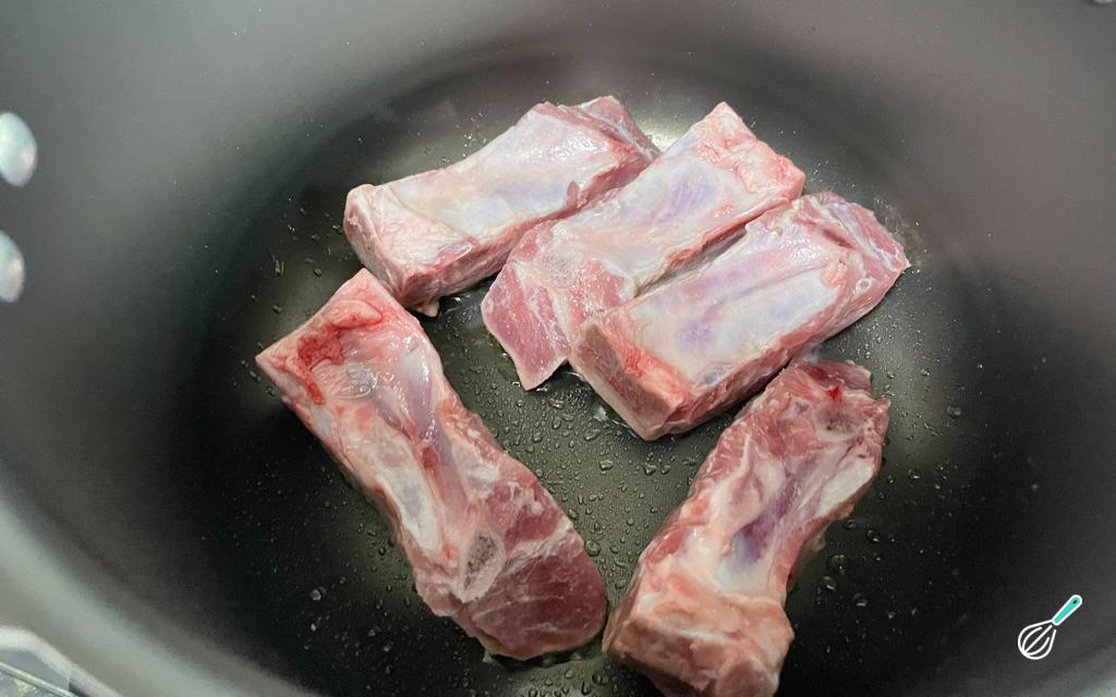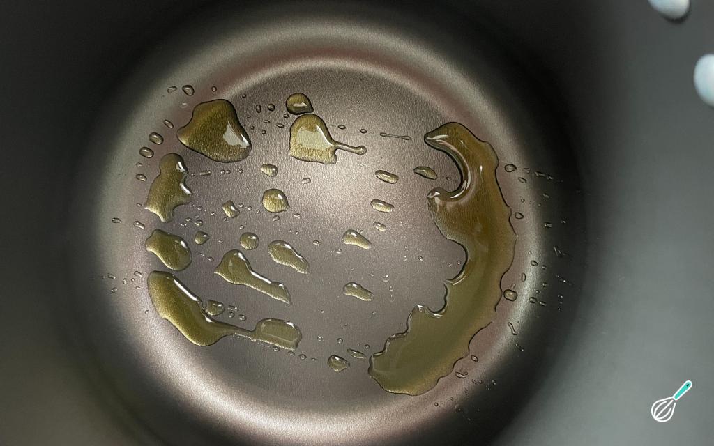 Numa panela de pressão, coloque o azeite.