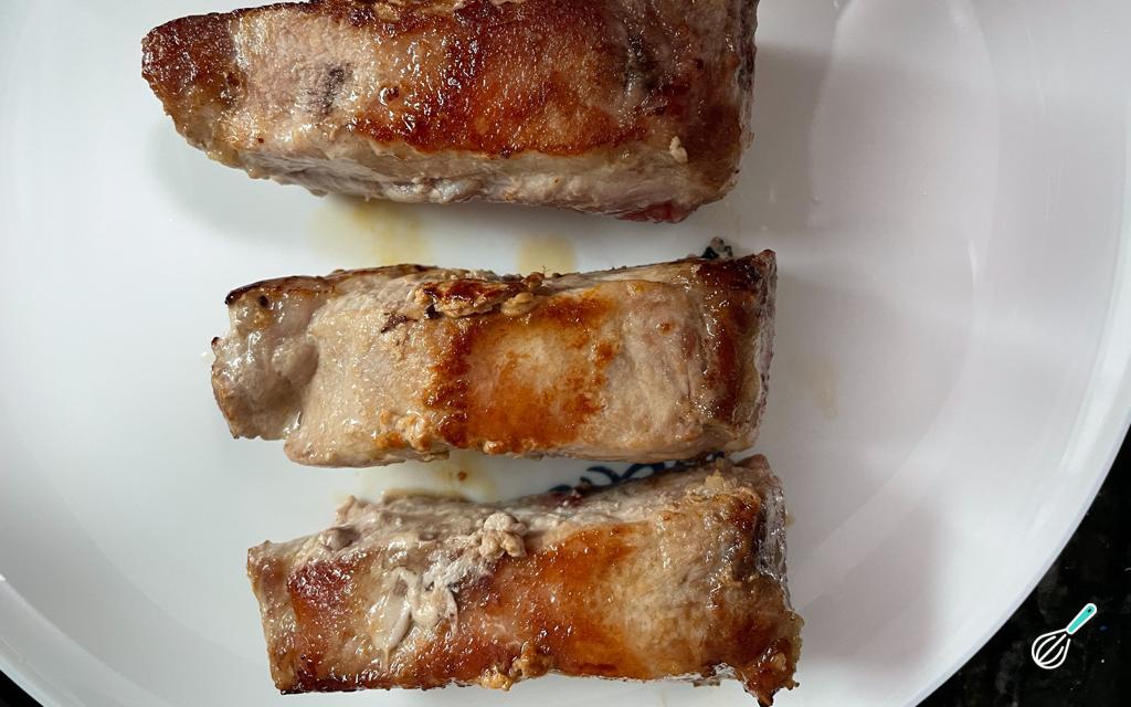Doure os pedaços de suã de todos os lados.