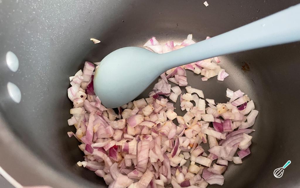 Na mesma panela, refogue a cebola até dourar.