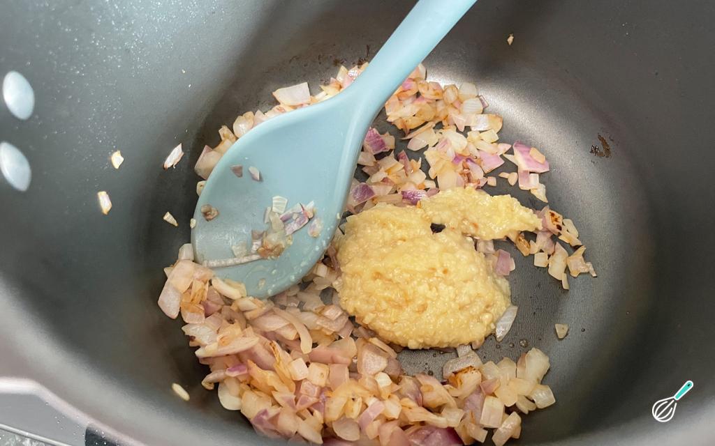 Adicione o alho e refogue.