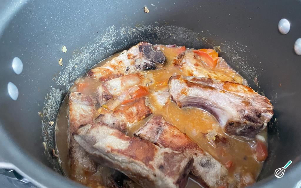 Adicione 250 ml de água e deixe cozinhar na pressão por 10 minutos (após pegar pressão).