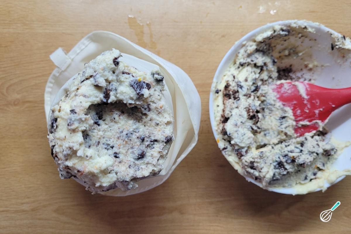 Transfira o creme de ricota para uma tigela. Ele deve estar assim bem cremoso.