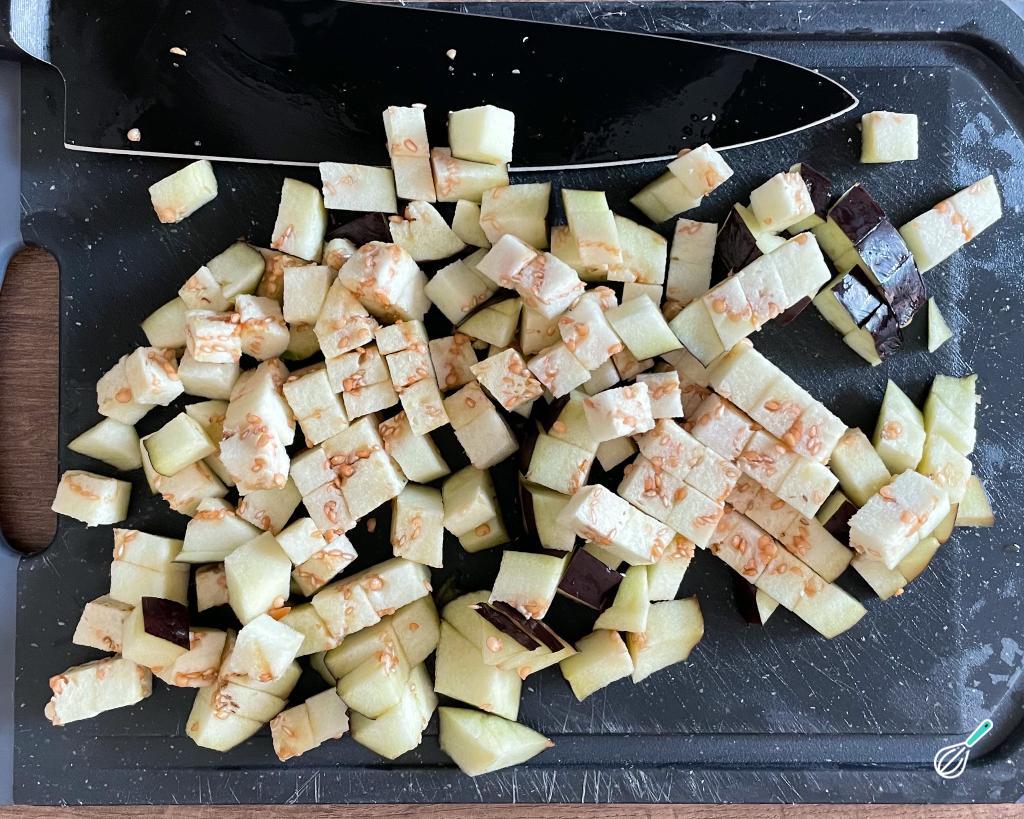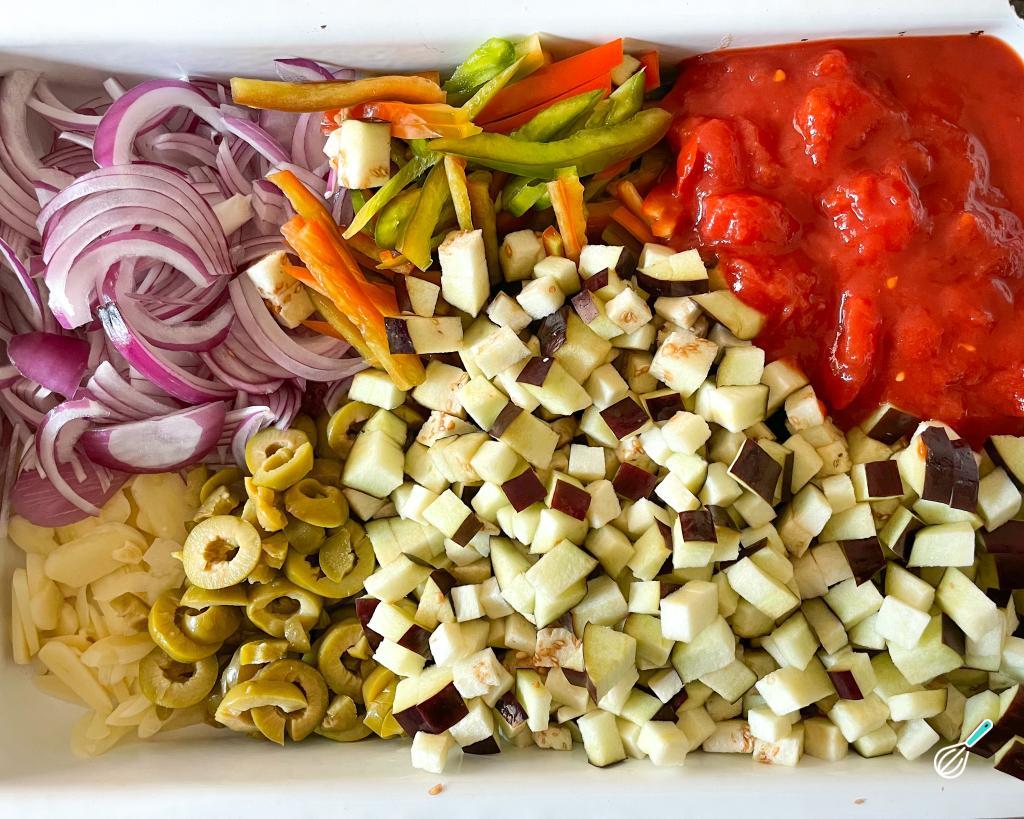 Comece separando todos os ingredientes para prepara a sua Caponata de berinjela no forno.