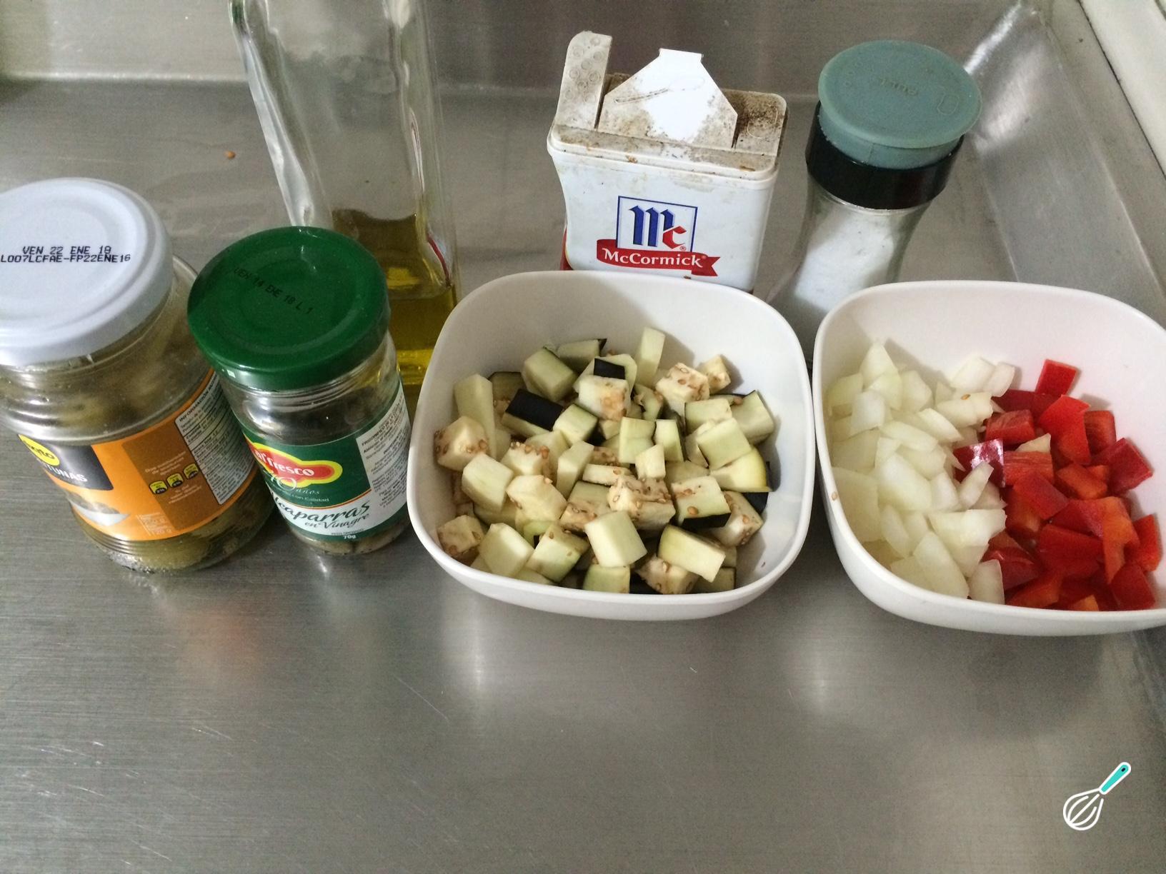 Antes de fazer esta caponata de legumes, o primeiro passo é preparar todos os ingredientes.