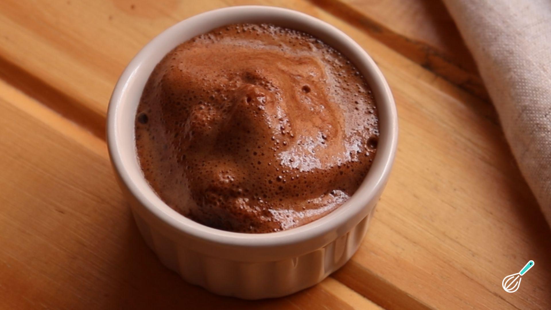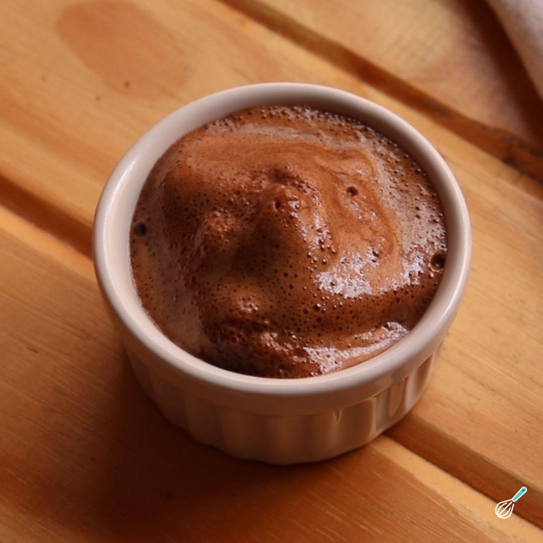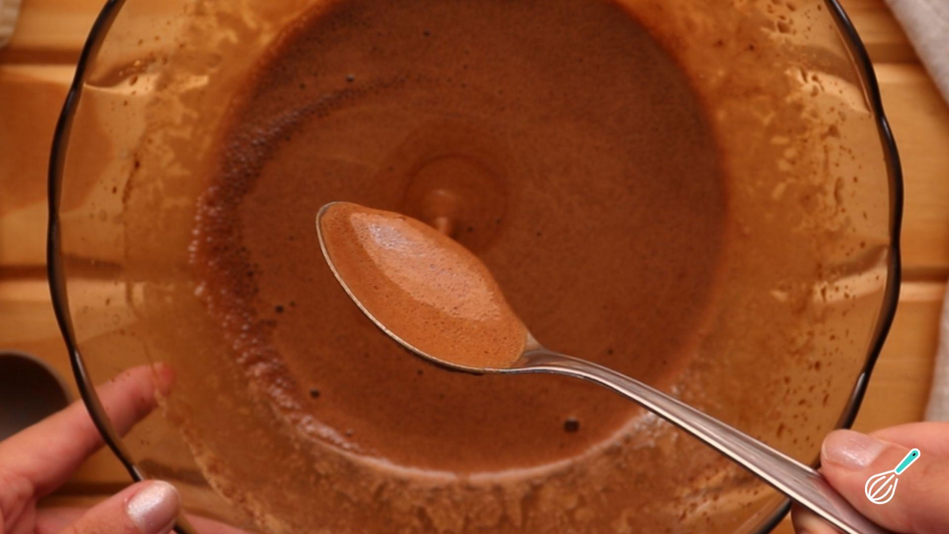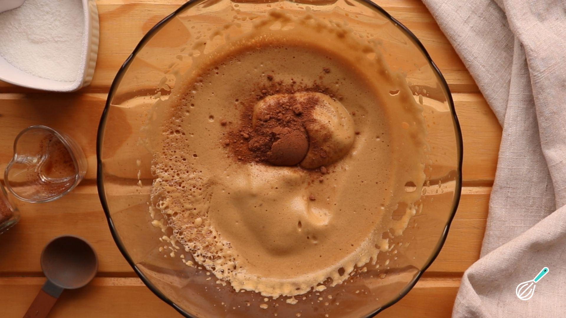 Junte o chocolate em pó e a canela e bata mais uma vez.
