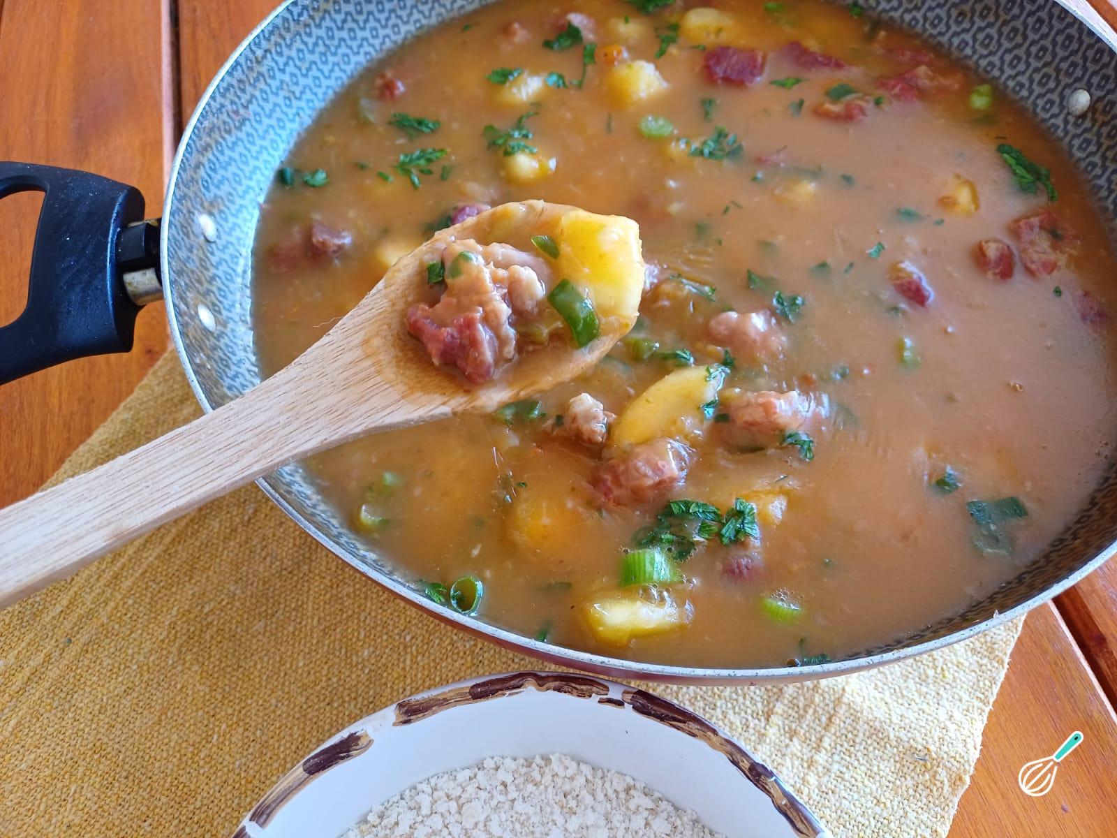 Esta é a nossa receita do delicioso caribéu pantaneiro! Combinando a suculenta carne seca com a cremosa mandioca, este prato é uma explosão de sabores tradicional do Pantanal. Segundo historiadores, sua origem é indígena, os indigenas faziam o caribéu com mandioca e carne de caça.