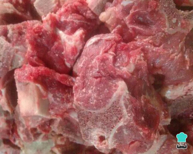 Tire o excesso de gordura da carne fervendo por 25 minutos em uma panela com água. No fim escorra a água.