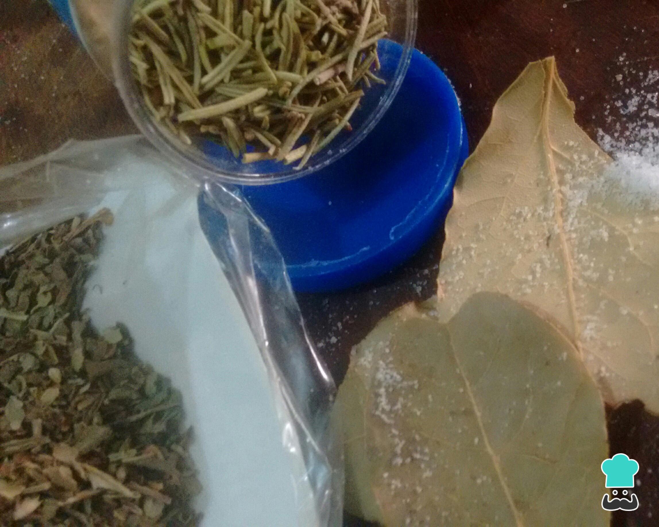Separe os demais condimentos: as folhas de louro, o alecrim, o manjericão e o sal.