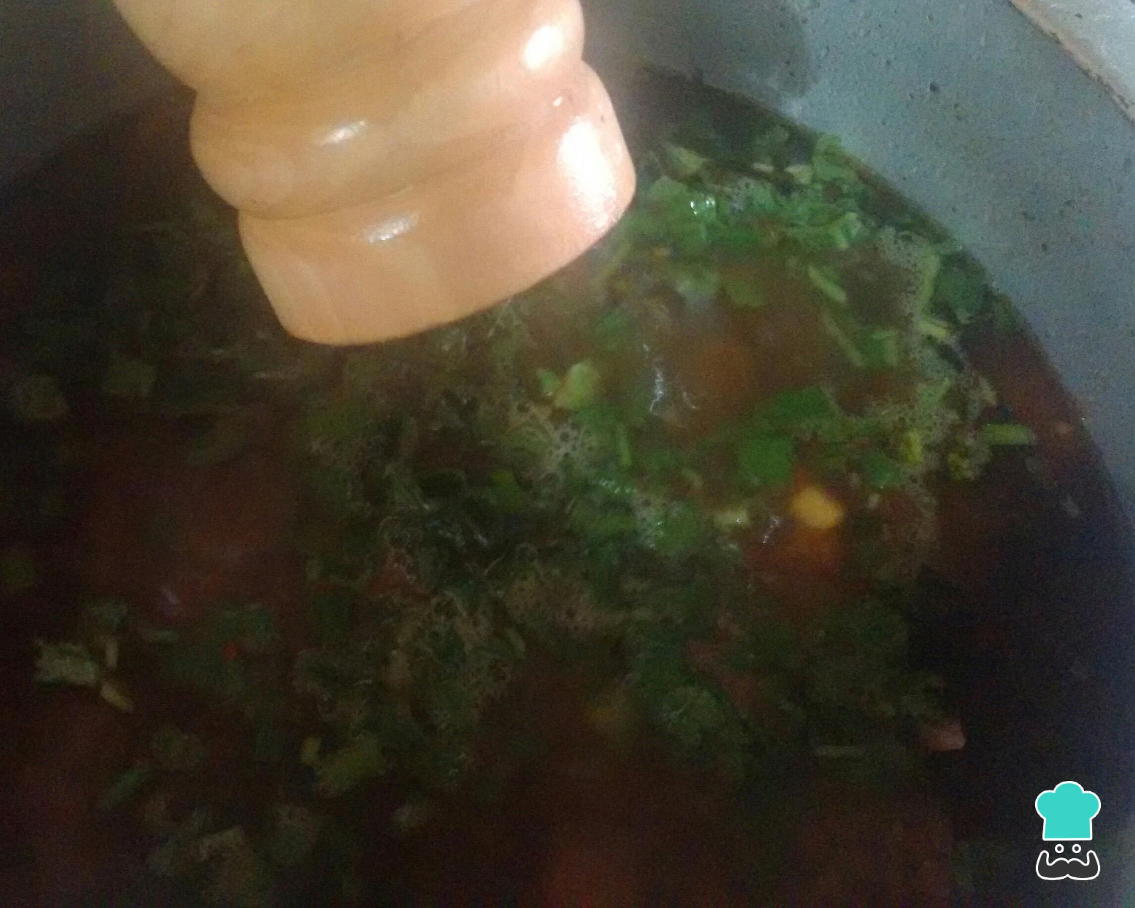 Por fim desligue o fogo, deixe a pressão sair sozinha e finalize com o sal a pimenta e o cheiro verde. Ferva por mais uns 10 minutos sem a pressão, apenas para apurar os sabores.