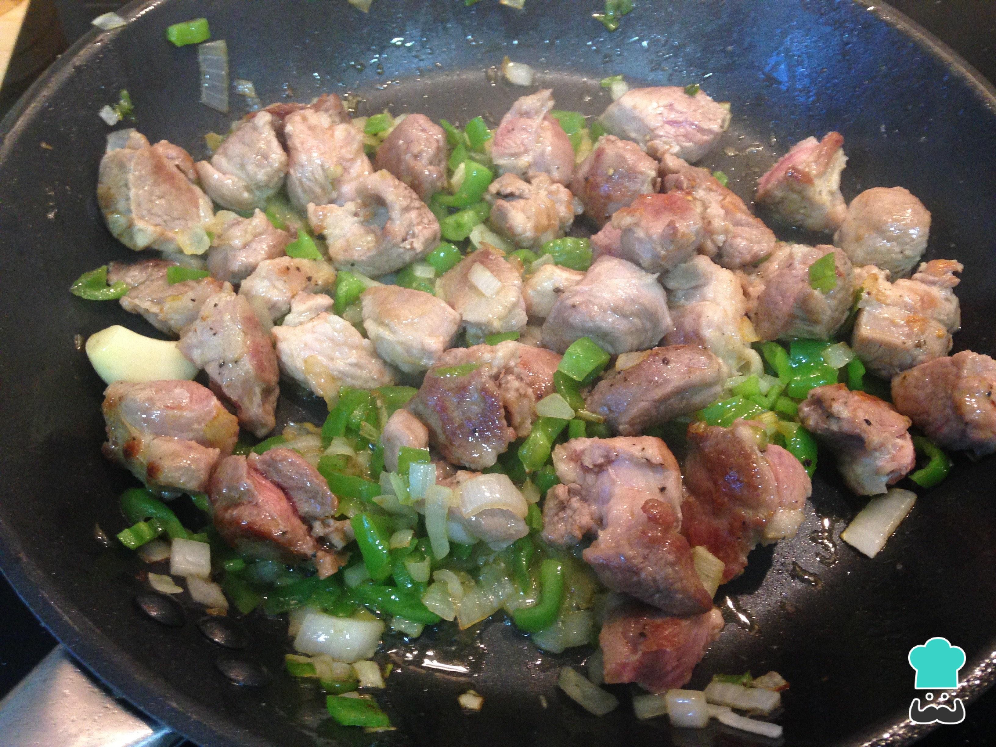 Uma vez fritos os legumes, adicione a carne e refogue durante 2 minutos.