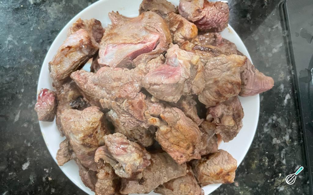 Qual o melhor tipo de carne utilizar para essa receita é uma dúvida frequente. A seguir indicamos alguns cortes para te ajudar na escolha. As carnes com maior quantidade de gordura e fibras são as mais indicadas para cozinhar na pressão. Em primeiro lugar, o acém, já que é o mais macio e possui bastante fibras. A costela também é uma boa opção, tem um percentual de gordura maior e fica ainda mais gostosa quando cozida com ossos. Uma outra alternativa é o músculo, com menos gordura e mais fibra, mas necessita de uma quantidade maior de líquido para evitar que fique seco.