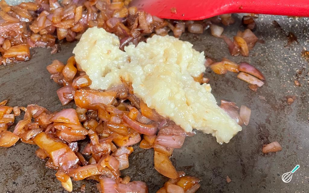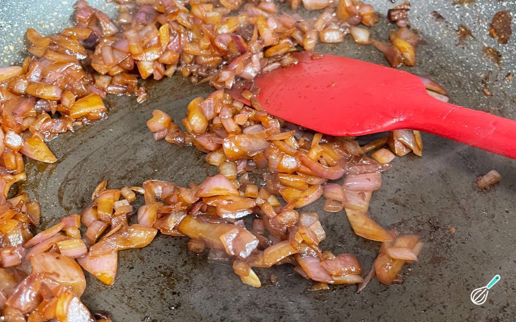 Refogue até dourar, raspando bem o fundo da panela para extrair os pedaços que ficam presos ao grelhar a carne.