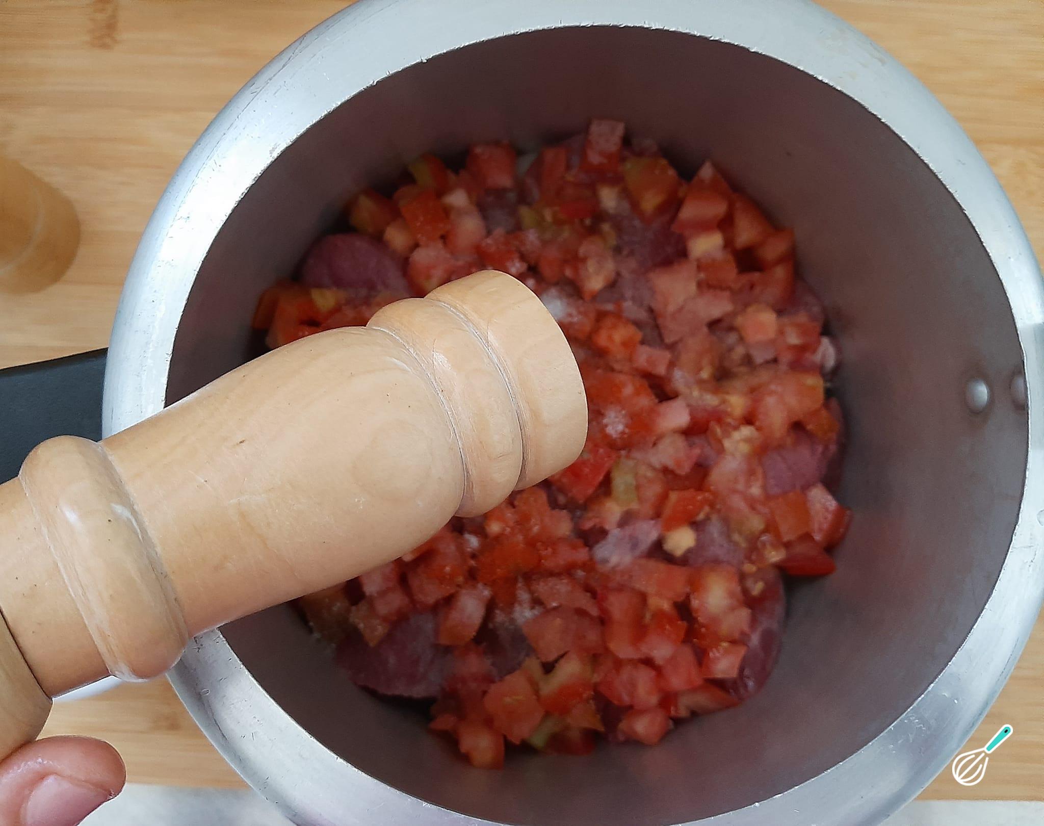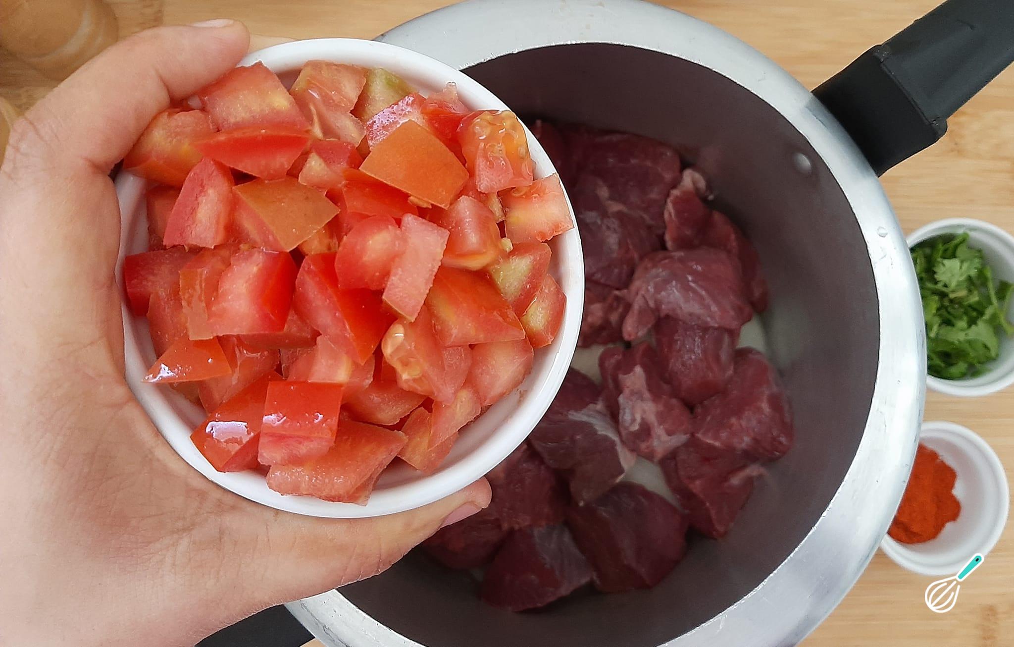 Adicione os tomates picados, de preferência sem as sementes.