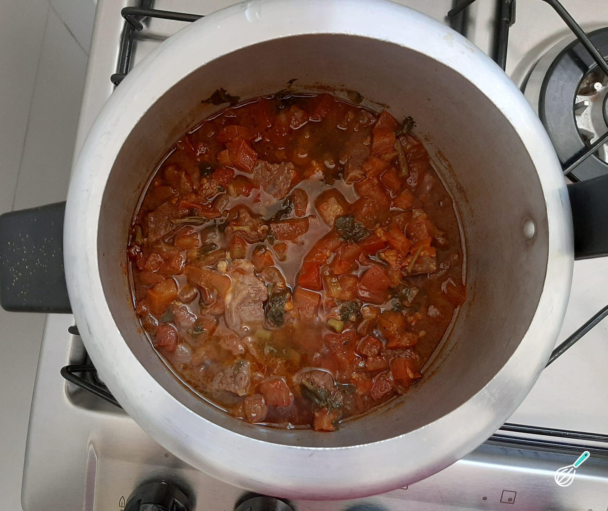 Após esse tempo, espere a pressão sair e abra a panela para conferir se a carne estará cozida e macia. Caso não esteja, leve novamente para cozinhar por 5 a 10 minutos.