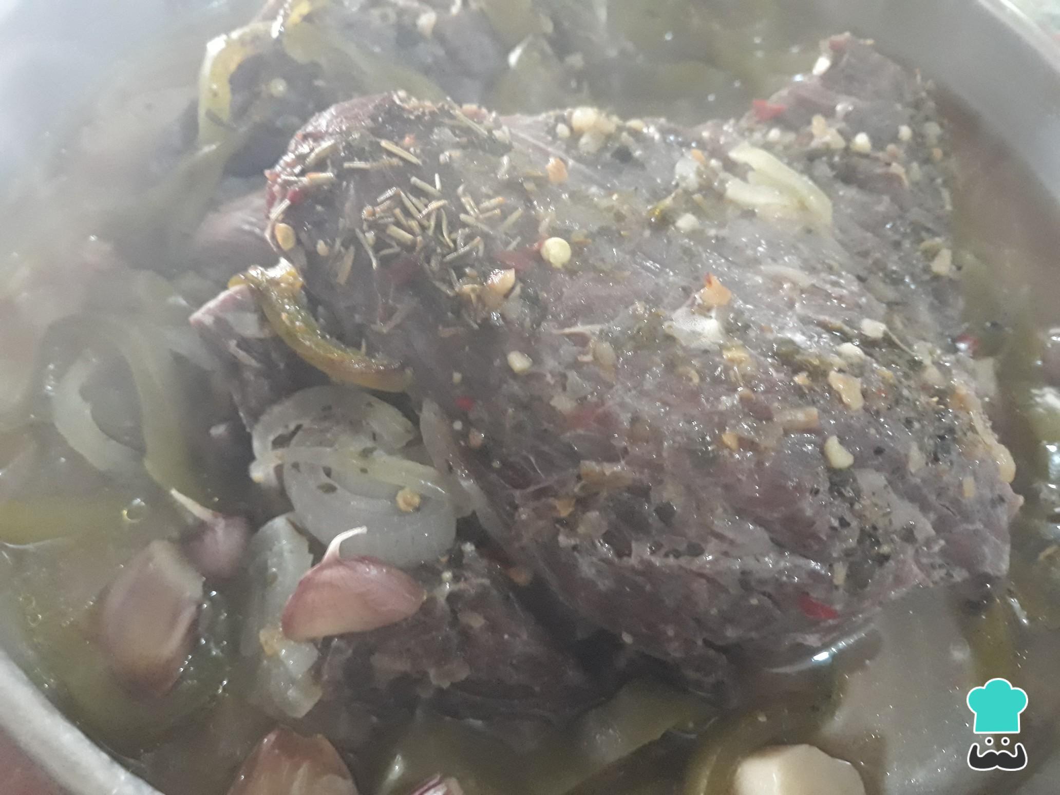 Quando a carne estiver macia retire do forno, fatie e sirva juntamente com o molho que se formou durante a cocção.