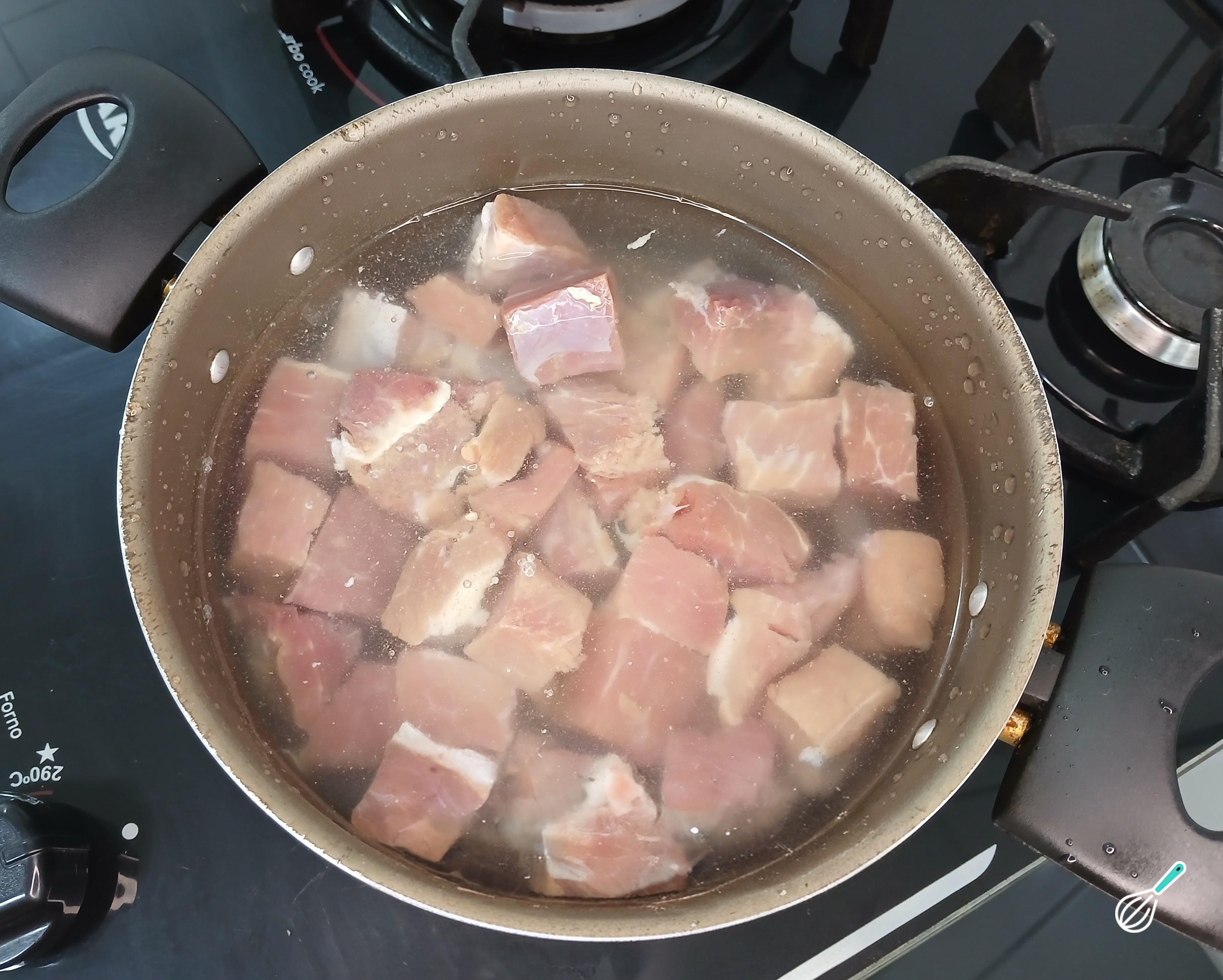 A carne de sol precisa ser dessalgada em água por no mínimo 8 horas, trocando a água algumas vezes. Depois desse tempo, descarte a água e coloque a carne de sol para ferver em uma panela com água limpa. Assim que ferver, desligue o fogo.