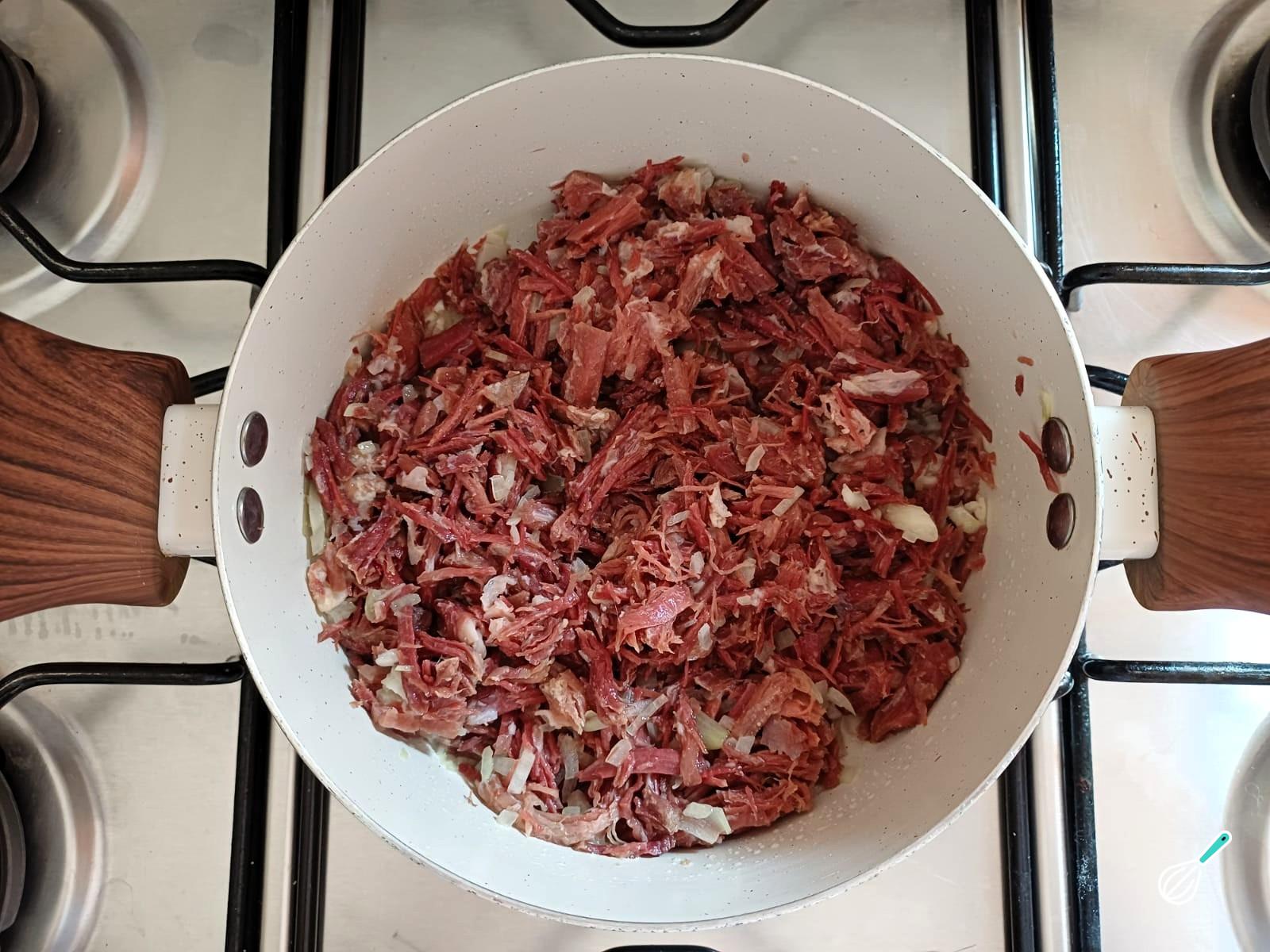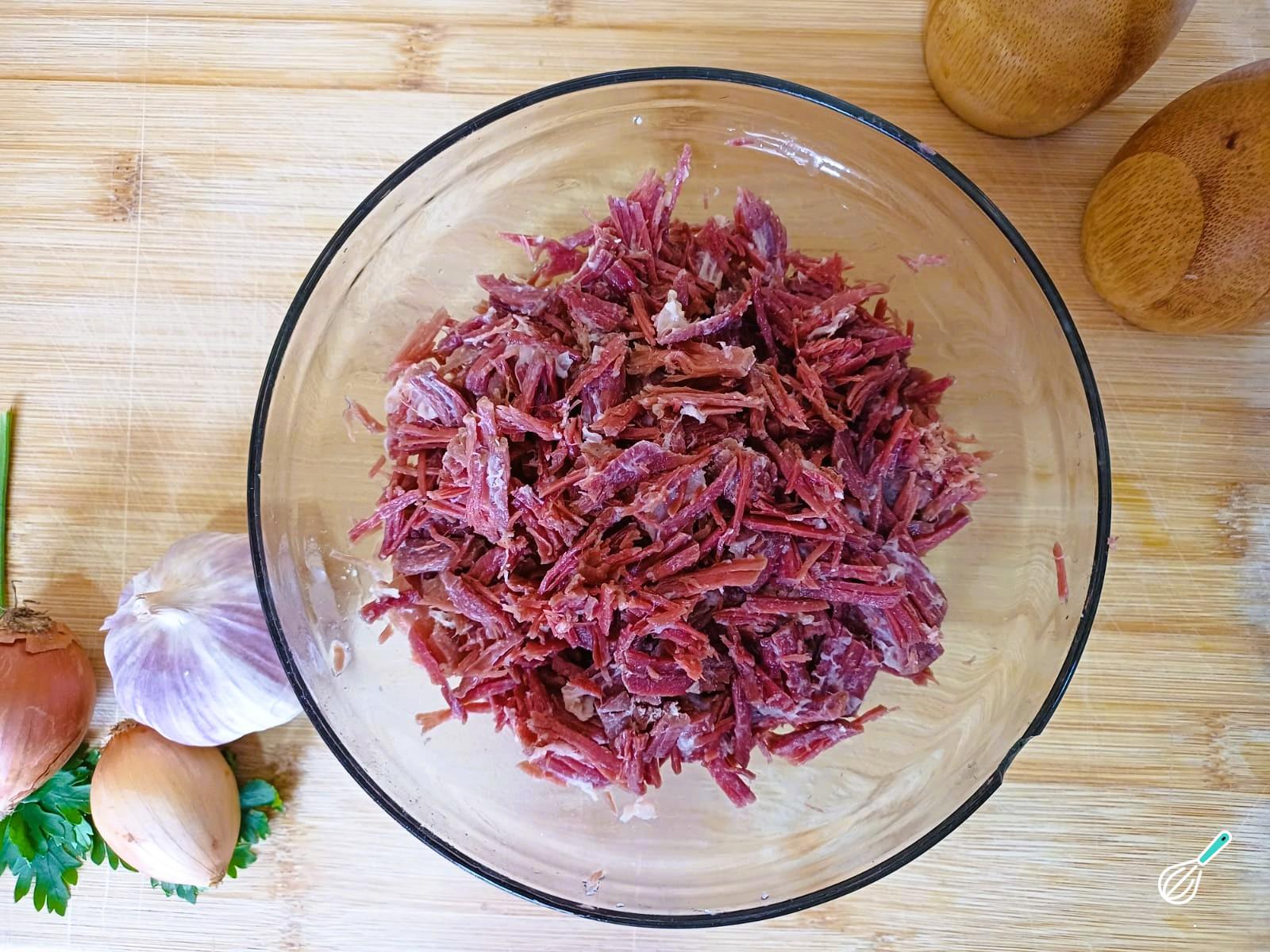 Dica: Se desejar, use um processador de alimentos para triturar a carne de sol já cozida.