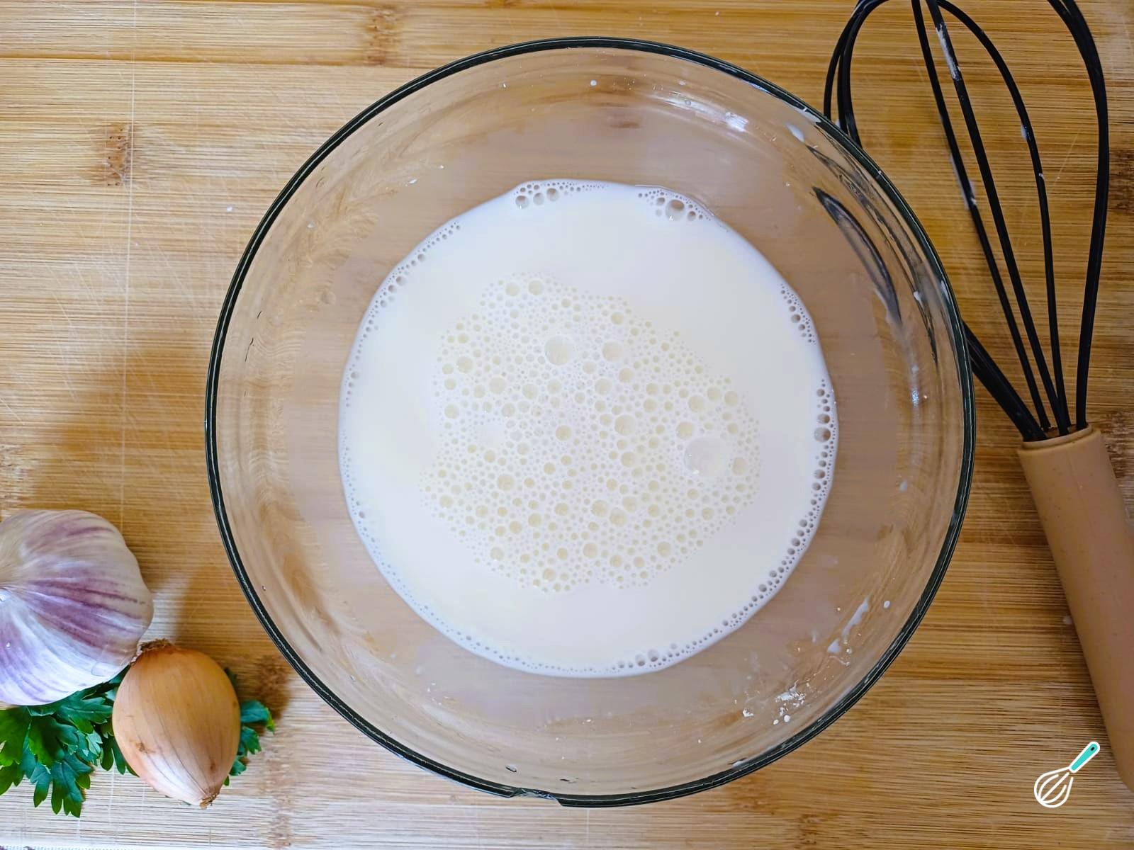 Em um recipiente, coloque o leite integral e dissolva o amido de milho.