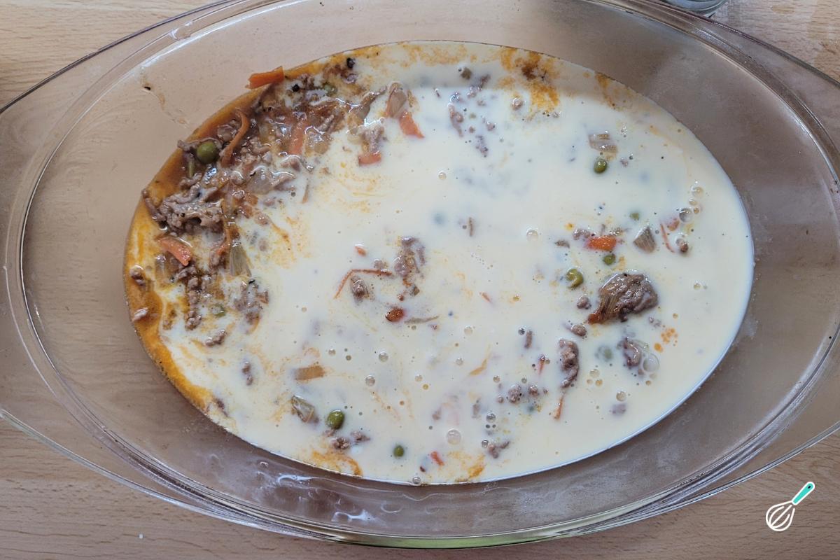 Jogue a mistura de ovos e creme de leite por cima.