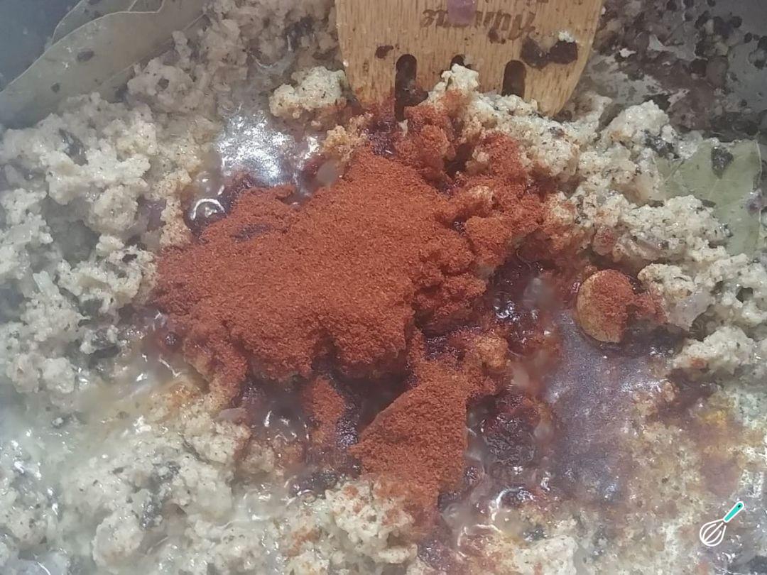 Após o passo anterior coloque a soja hidratada e escorrida e misture. Coloque também os restantes ingredientes: a páprica, o açúcar, sal e pimenta.