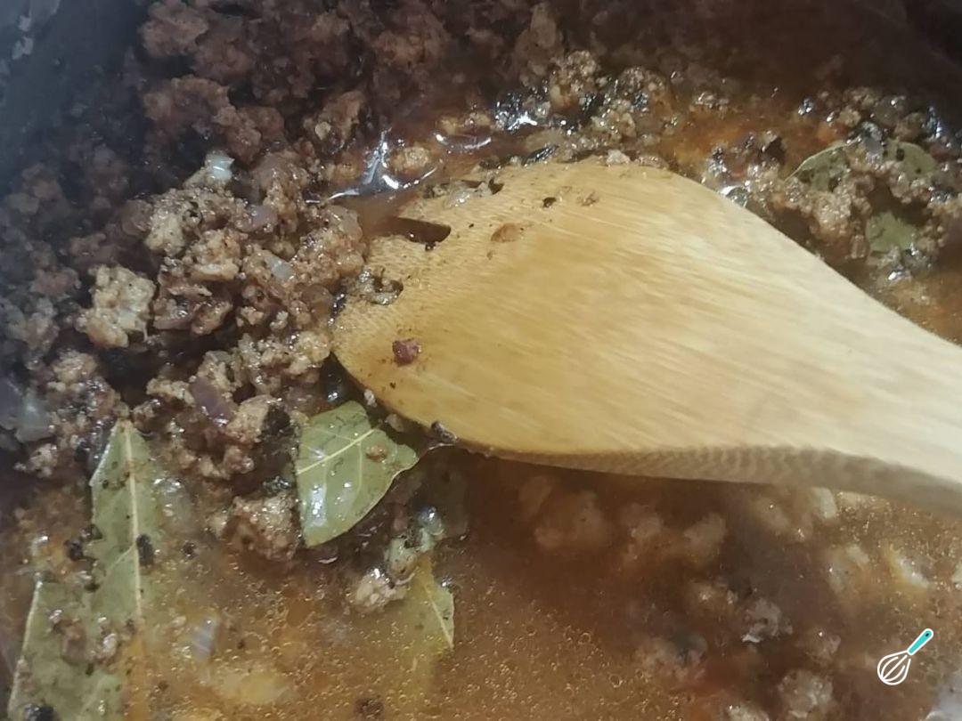 Adicione os ingredientes líquidos (o vinho, o vinagre e o shoyu), misture e espere ferver. Nesse momento baixe o fogo e cozinhe a carne de soja refogada tampada por uns 5-10 minutos após ferver novamente.