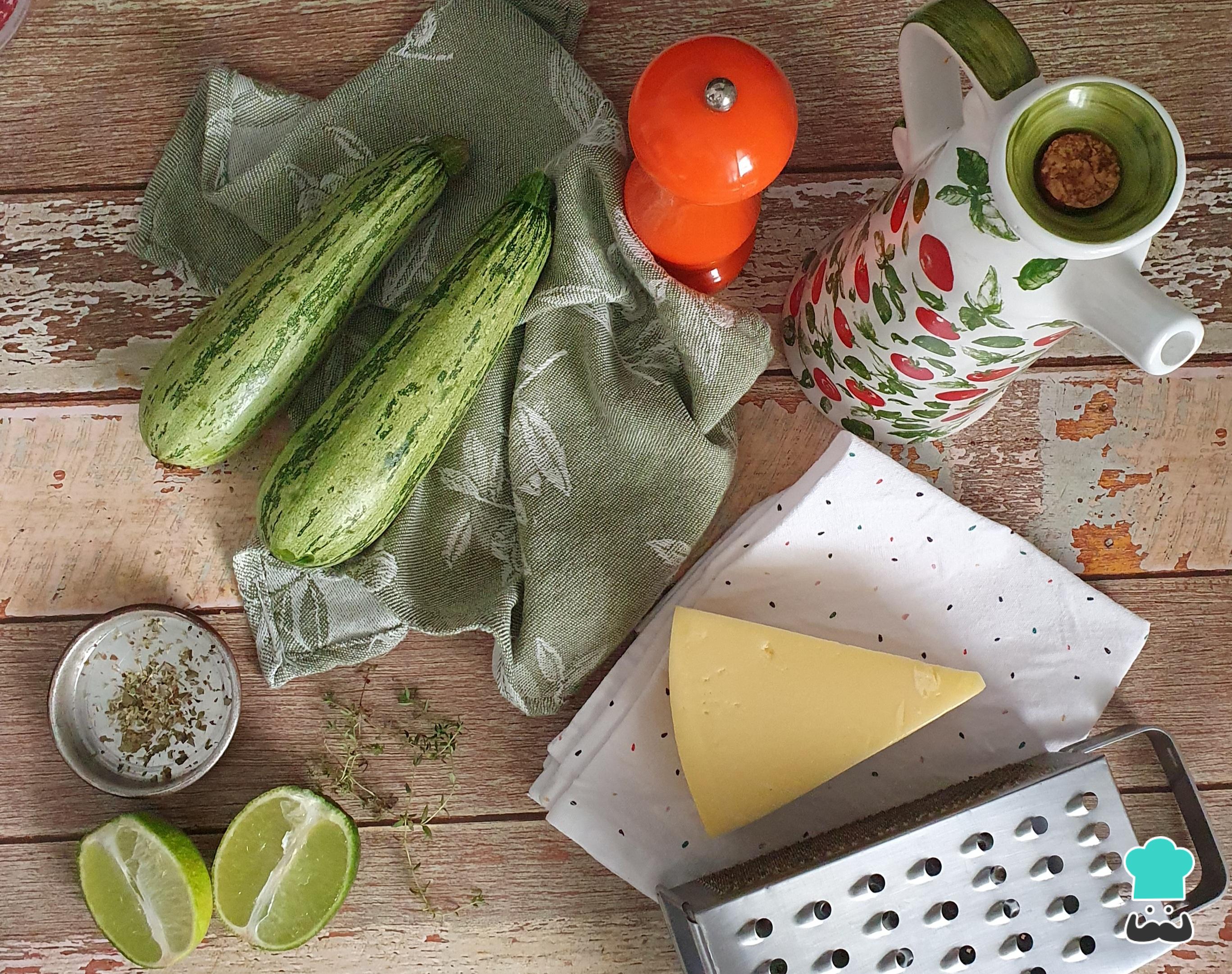 Separe os ingredientes que você vai precisar para preparar o seu Carpaccio de Abobrinha: as abobrinhas, o queijo parmesão, azeite, sal e o limão