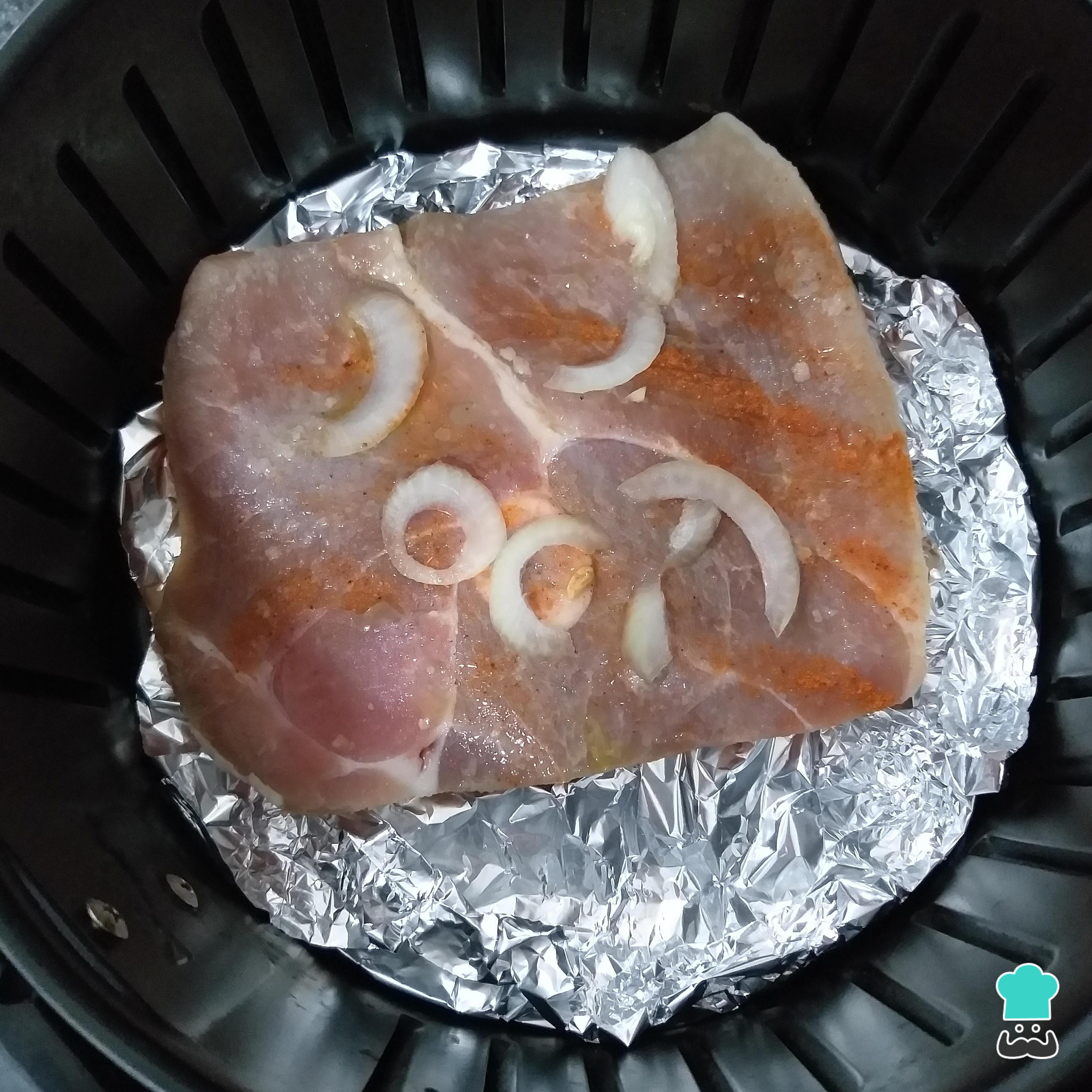 Após o tempo indicado transfira a carne para a AirFryer e deixe assar por 15 a 20 minutos a 200°C. Se preferir preparar o carré suíno no forno, leve para assar a 200ºC mas deixe por mais tempo (30 a 40 minutos).