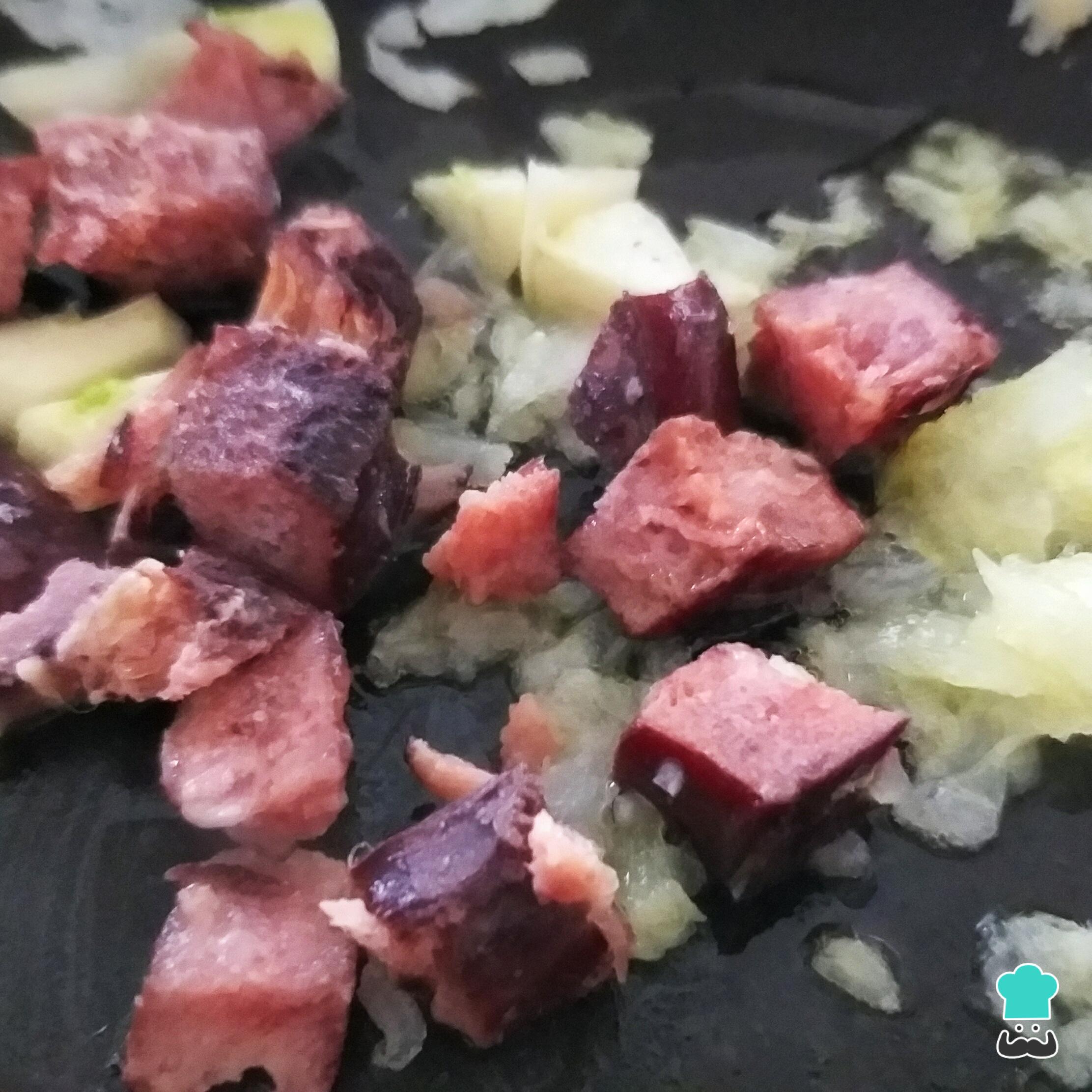 Acrescente as linguiças cortadas e mexa por 1 minuto.