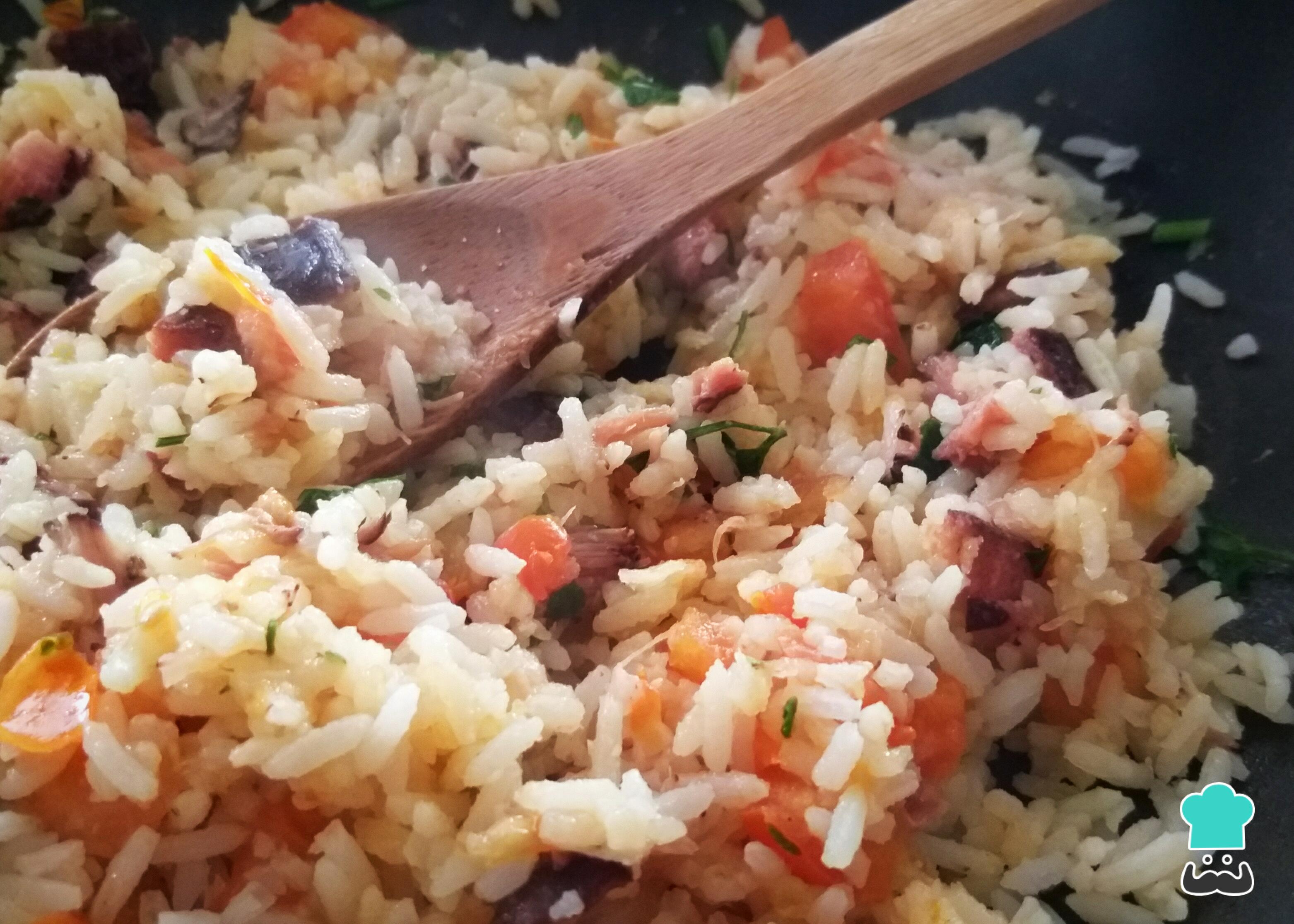 Por fim, coloque o arroz e misture bem até incorporar todos os ingredientes. Salpique salsinha e parmesão ralado e sirva a seguir!