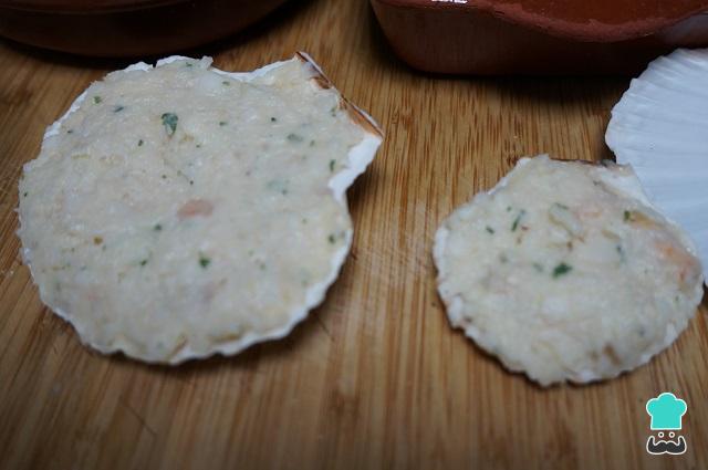 Coloque aproximadamente 1 colher de sopa do recheio em cada concha e pressione para deixar bem compacto. Não exagere na quantidade de recheio para ele não vazar.