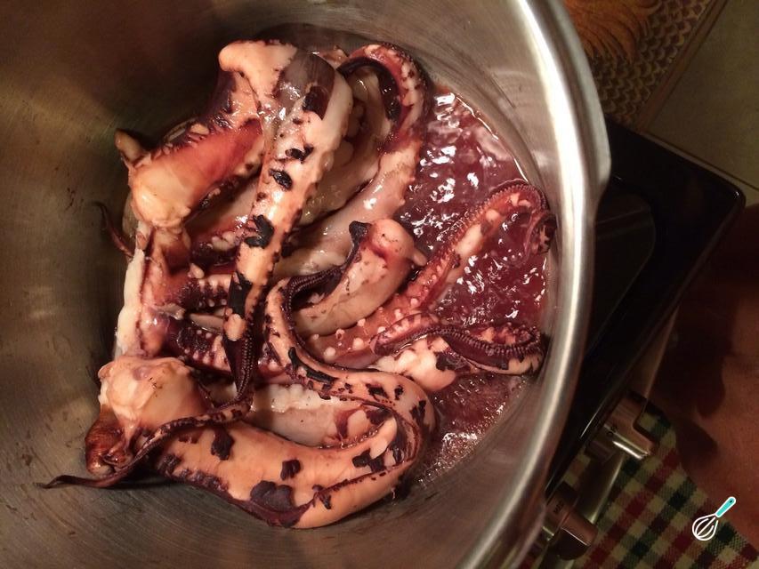 Para preparar uma maravilhosa cataplana de polvo com batata doce, comece por cozer o polvo por 40 minutos na panela de pressão. Retire, corte em pedaços e reserve o caldo.
