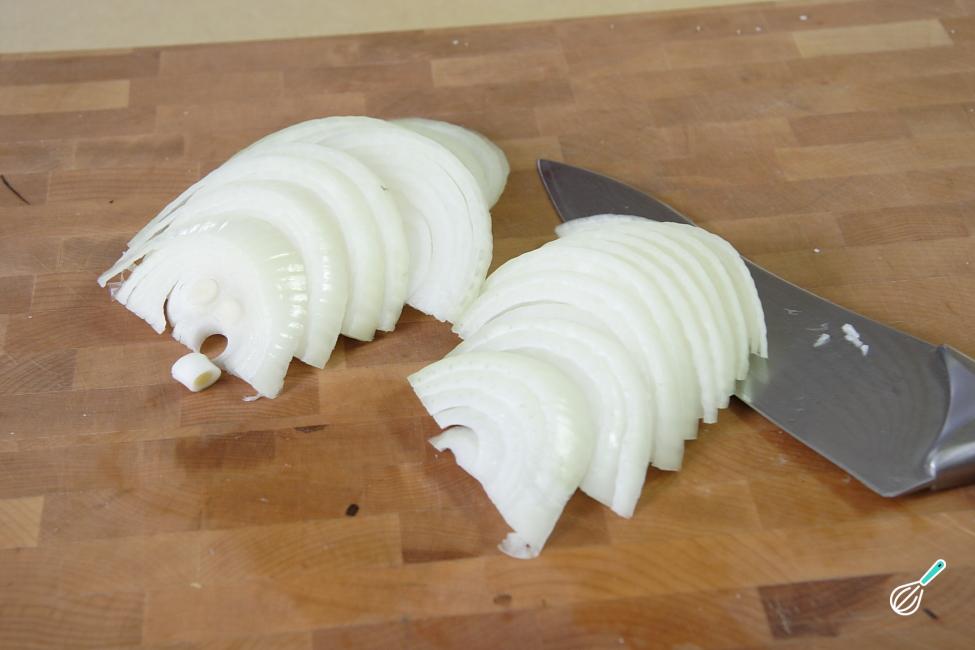Asse a batata-doce por 30 minutos, remova a pele e corte em cubos. Corte a cebola em meia-lua, o tomate em cubinhos e os pimentos em tiras. O chouriço deve ser cortado em rodelas e o alho em fatias finas.